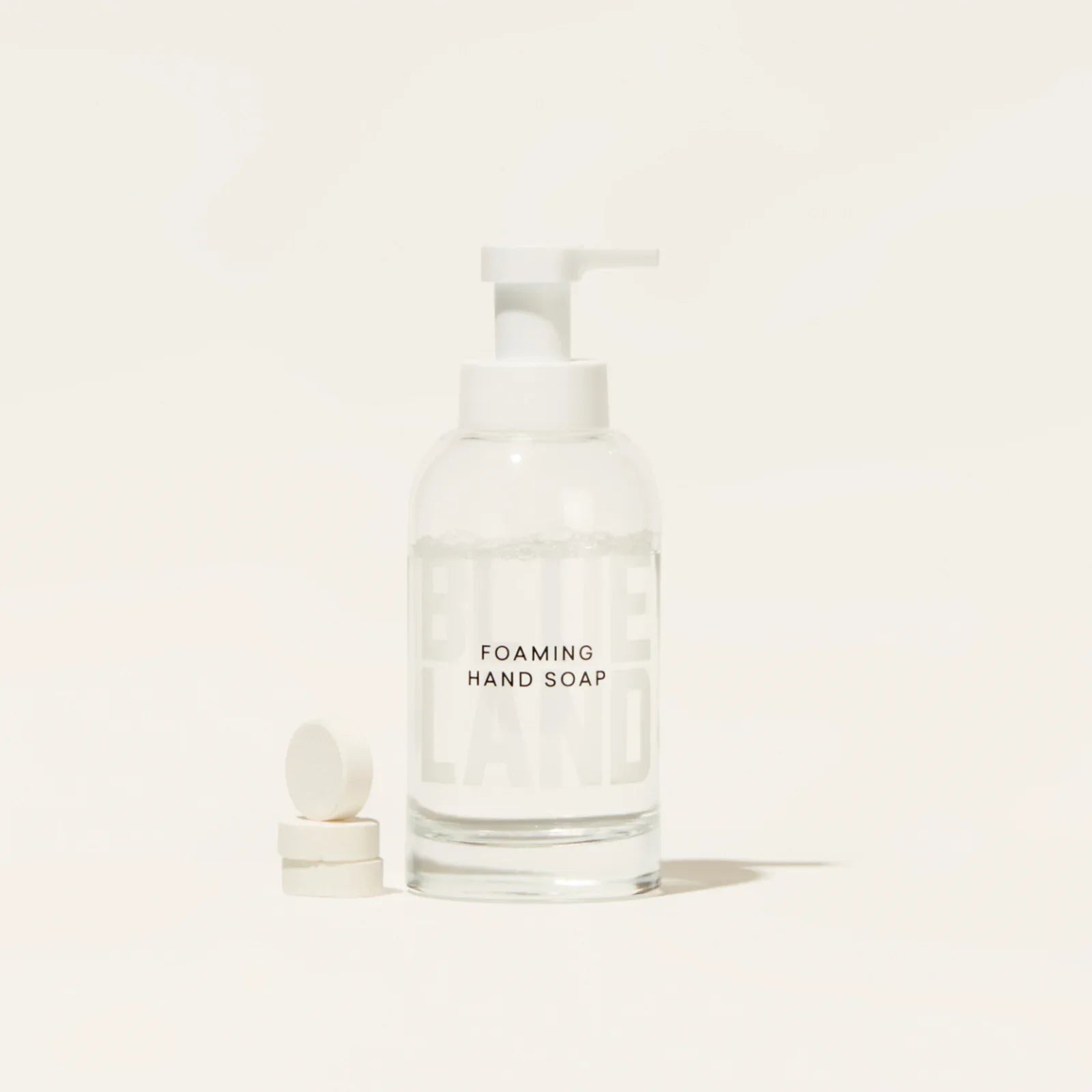 One bottle, refill it forever. Just fill your Forever Bottle (a reusable glass hand soap dispenser) with water, drop in a 100% plastic-free tablet and and enjoy rich, foaming goodness at your fingertips! Consider it your sink’s BFF (literally forever). Each tablet makes one full bottle of Foaming Hand Soap.