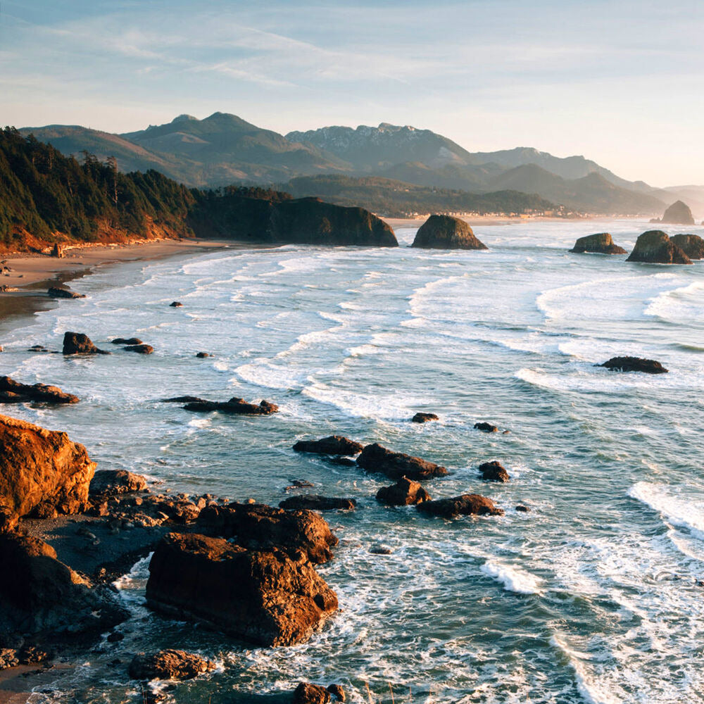 This fresh and complex scent is inspired by Pacific Northwest beaches. It starts with notes of green apple, lily, fresh rain, and airy green flowers. Base notes of oakmoss, musk, and violet leaf add depth.