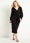 Close fit Fully-lined skirt Self-tie front twist detail Cuffed sleeves