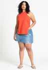 ELOQUII Item Number: Please select size 95% Cotton, 5% Spandex Snug fit Hits at the hip Body Length 28" at front/ 18 1/2" at sides on Size 18 Stretch knit Machine wash cold gentle cycle with like colors. Only non-chlorine bleach when needed. Do not tumble dry. Lay flat to dry. Cool iron as needed