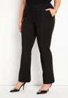 ELOQUII Item Number: Please select size The Ultimate Suit Flare Leg Pant Slim high waisted trouser High rise Fly-front zipper closure Soft encased elastic back waistband Contoured front waistband Pintuck at front leg Back waist darts Slanted side pockets Back welt non-functional pockets Slim fit Flare leg opening Signature Camden stretch fabric Ponte stretch rayon/ nylon/ spandex 31 1/2" inseam 59.5% Rayon / 36% Nylon / 4.5% Spandex Care: Machine wash cold gentle cycle with like colors. Only non-chlorine bleach when needed. Tumble dry low. Cool iron as needed.