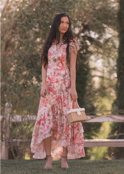 The Daphne Dress is a blooming work of art, where vintage charm meets modern romance. With its flattering wrap silhouette and flutter sleeves, it’s designed to make every moment feel effortlessly graceful. Draped in vibrant florals, this dress feels like stepping into a painting—perfect for garden parties, dreamy escapes, or moments worth remembering.