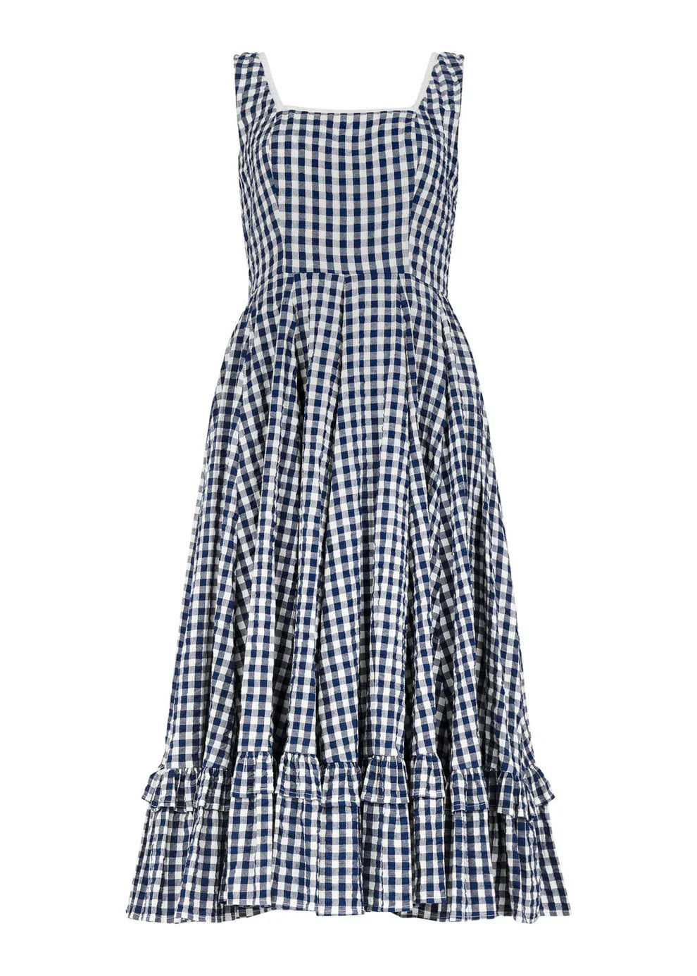 Capture the magic of carefree days in our Daze Dress. Featuring a classic navy gingham print, a flattering square neckline, and a breezy tiered skirt, this style is made for spontaneous adventures and sun-drenched strolls. Finished with pockets and a flowy silhouette, it’s the perfect blend of comfort and charm.