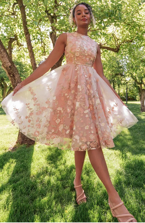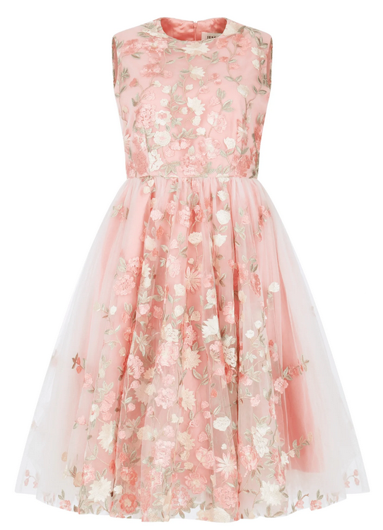 The Lucille Dress is a stunning piece that embodies elegance and sophistication. Its delicate blush pink hue is adorned with intricate floral embroidery, adding a touch of romance to the classic design. The sleeveless bodice and full skirt create a timeless silhouette, perfect for formal occasions or a charming garden party. Crafted with a soft tulle overlay, this dress exudes grace and femininity, making it an exquisite addition to any wardrobe.