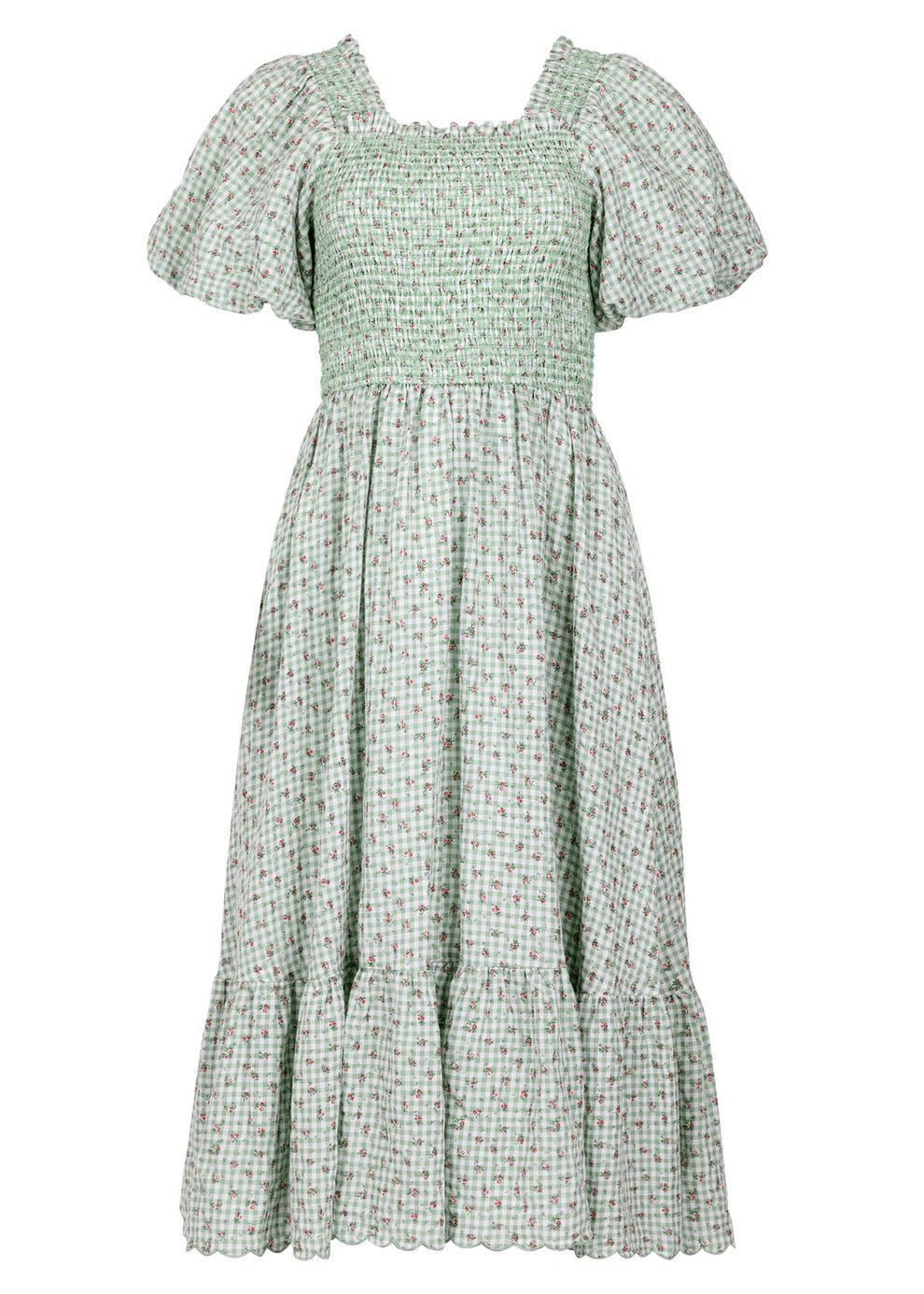 The Rosie Posie Dress captures a countryside charm with its delicate gingham pattern sprinkled with petite rose details. Its smocked bodice offers a comfortable fit, while puffed sleeves and a tiered skirt bring a playful, vintage-inspired silhouette. Perfect for breezy days and cozy moments, this dress blends timeless simplicity with just the right touch of sweetness.