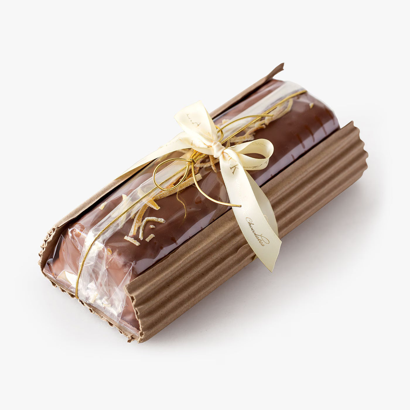 Gianduja (hazelnuts, cocoa, cocoa butter, sugar, dehydrated milk powder, sunflower lecithin, soy lecithin, vanilla bean) hazelnut flour, eggs, sugar, orange juice, potato starch, rum, orange peel, orange zest, salt