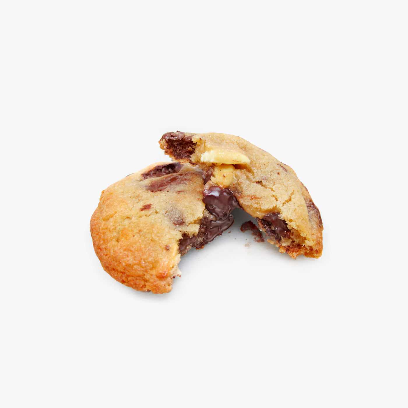White chocolate (cocoa butter, sugar, milk powder, sunflower lecithin, soy lecithin, vanilla bean), sugar, eggs, flour, butter, dark chocolate (cocoa, cocoa butter, sugar, soy lecithin, vanilla bean), dark brown sugar, raspberries, salt, baking powder, vanilla bean