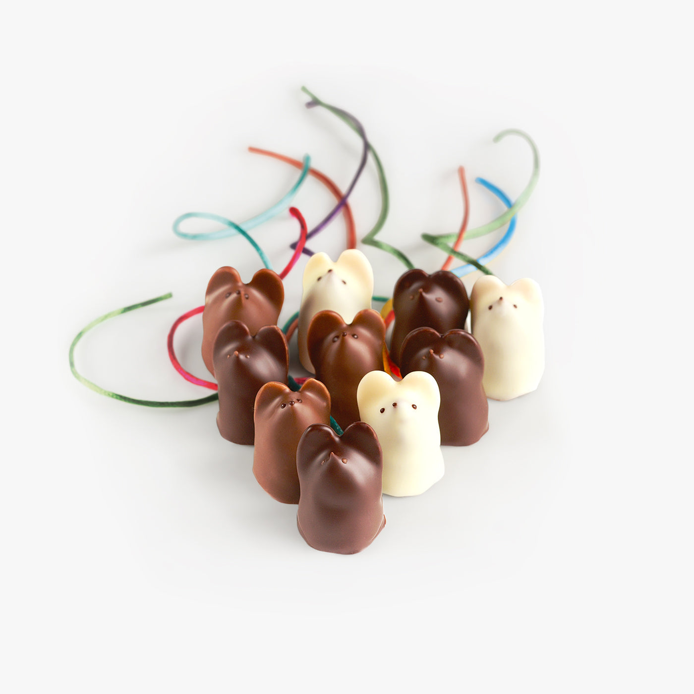 The Chocolate Mice have been our signature chocolates for more than 30 years and embody our long dedication to craftsmanship. Never using molds, we make the Mice individually by hand. Each takes 12 steps over three days to create. The Mice come in a wooden gift box hand-tied with a ribbon and hand-stamped with a wax seal.