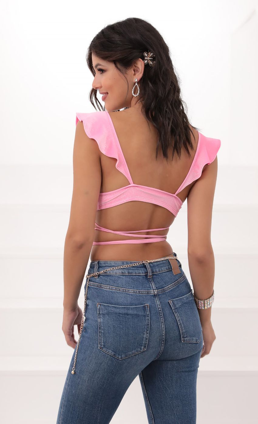 A match made in heaven: this Two Piece Set. Exude effortless charm in this high-waisted ruffled skirt, and the real show stopper the crop top. Made in our very popular burgundy velvet stretch fabric. The top includes an adjustable front tie and matching ruffle sleeves. Pair with your favorite heels and clutch, you're set for the night.Â