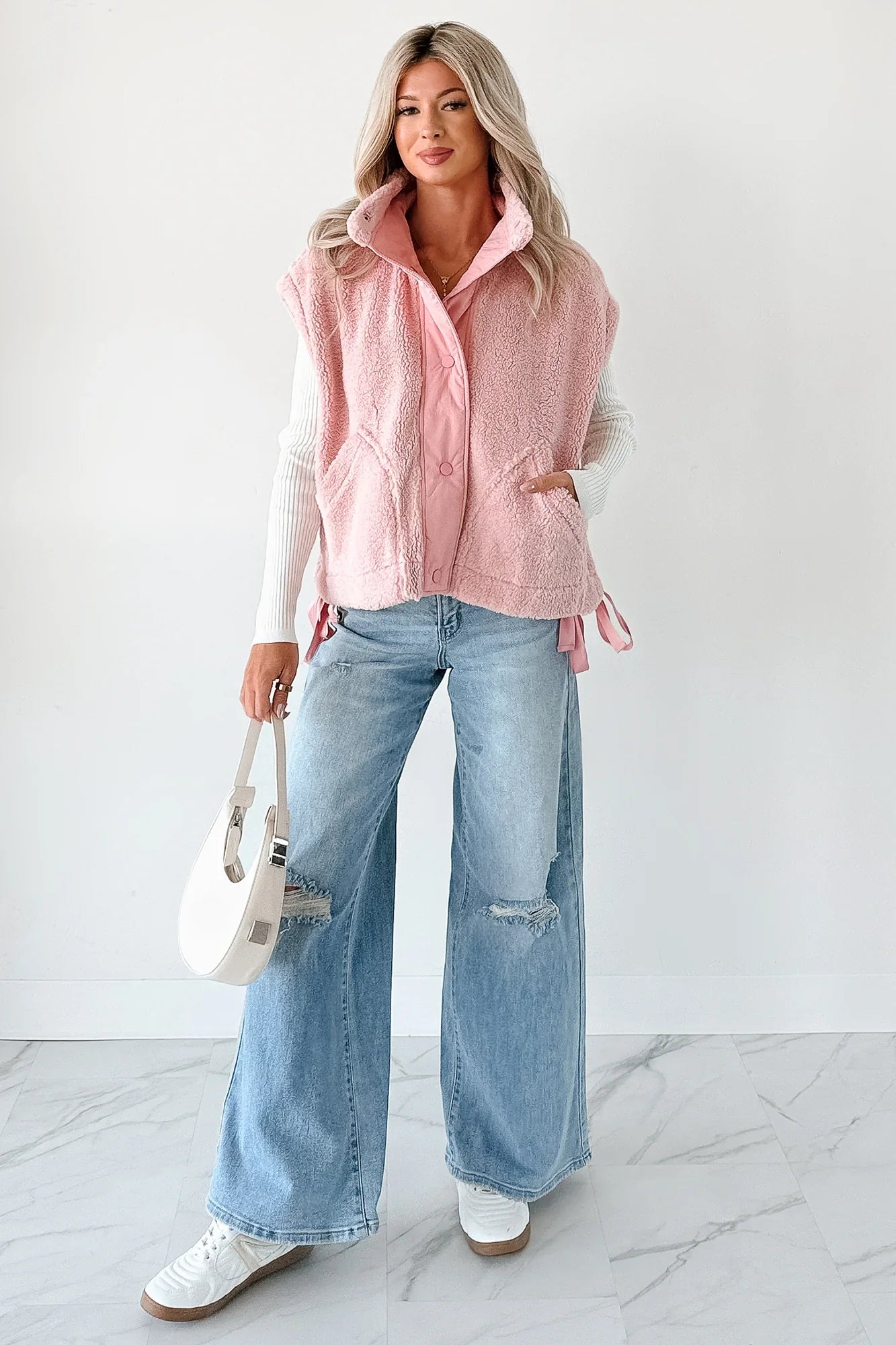 Description Model Wearing Size Small Color: Pink Fleece Material Sleeveless High/Mock Neck Button-Up Front Side Tie Details Front Pockets Material Has Some Stretch 8" Armpit To Hemline 100% Polyester For Model Size Specs, Please Check Size Charts