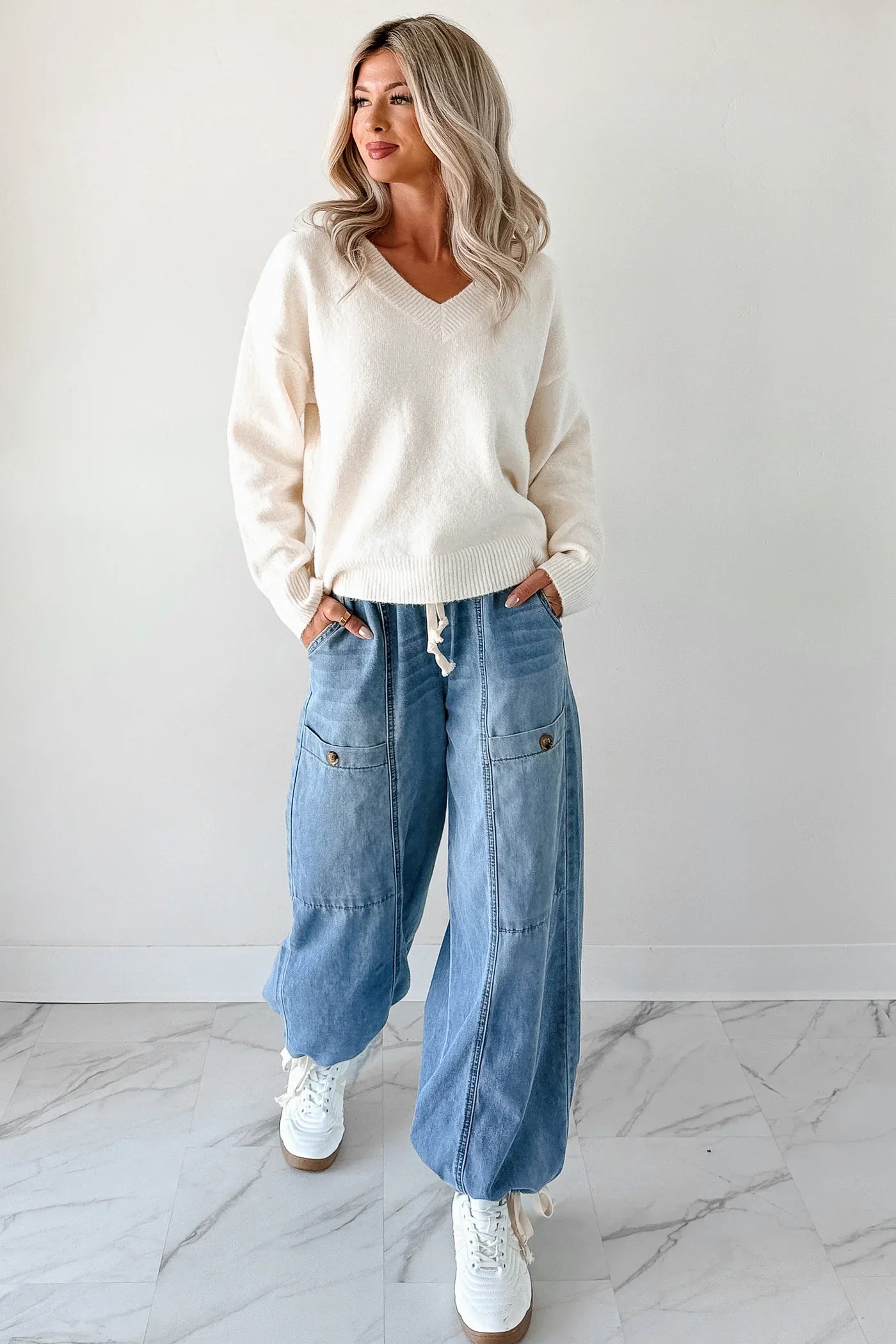 Description Model Wearing Size Small Color: Cream Soft Sweater Knit V-Neck Long Sleeve Relaxed Fit Material Has Good Stretch 17" Armpit To Sleeve End 13" Armpit To Hemline For Model Size Specs, Please Check Size Charts