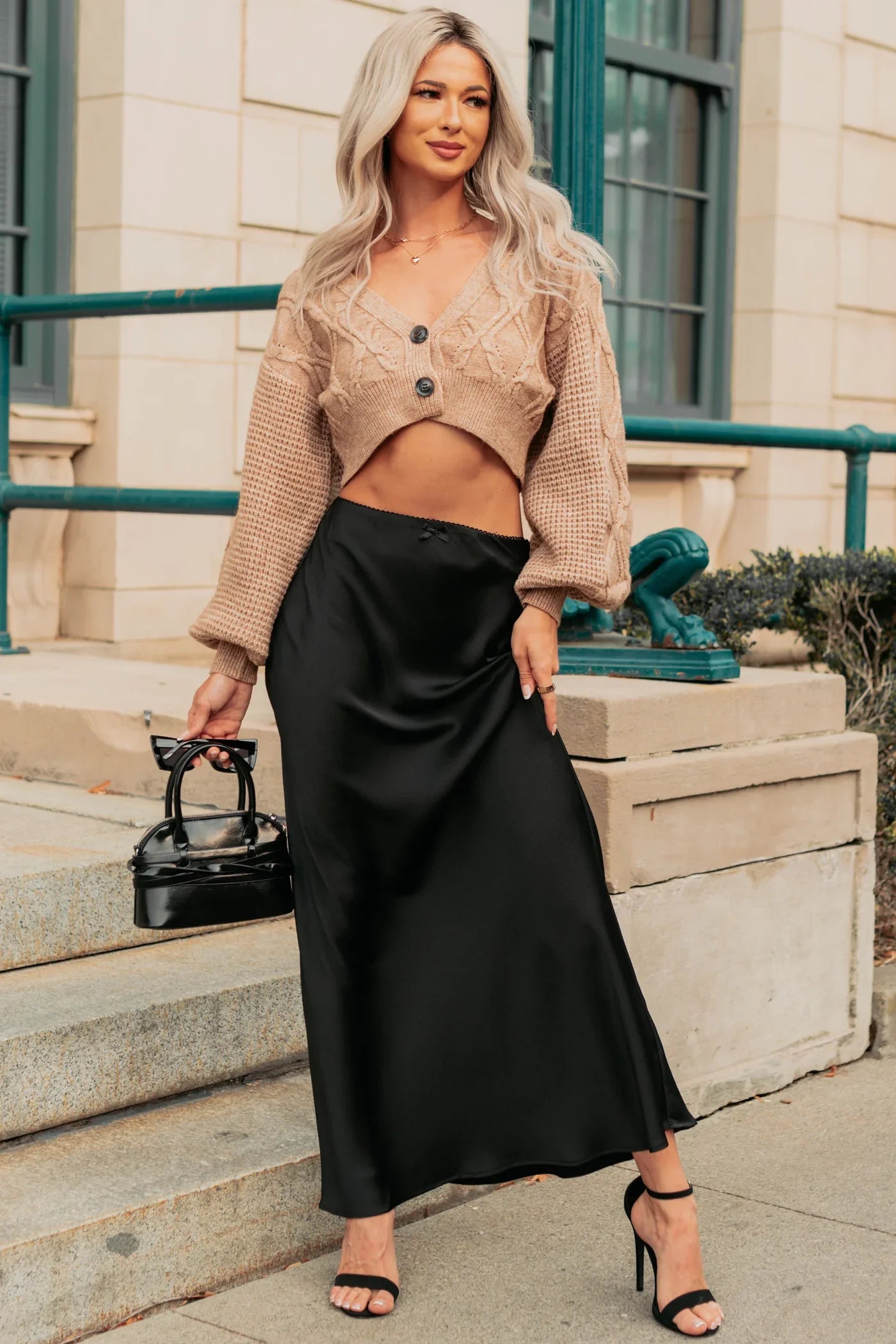 Description Model Wearing Size Small Color: Taupe Cable Knit Material Balloon Sleeves V Neckline Button-Up Front Cropped Fit Material Has Stretch 22" Armpit To Sleeve End 7" Armpit To Hemline 42% Acrylic, 28% Nylon, 30% Polyester For Model Size Specs, Please Check Size Charts