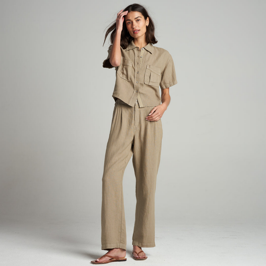 With a boxy silhouette and relaxed fit and made from naturally anti-microbial 100% linen, The Sloane is the perfect easy and breezy summer blouse. Plenty of Rowan details such as herringbone cotton twill tape on the inside front placket for a contrasting reveal when worn with open buttons, our two-hole signature metal buttons, and patch chest pockets. The wide center back box pleat with signature stitch details secured at the top and bottom give movement and flow while holding the Sloane's shape. The short sleeves are extra cute when rolled up.