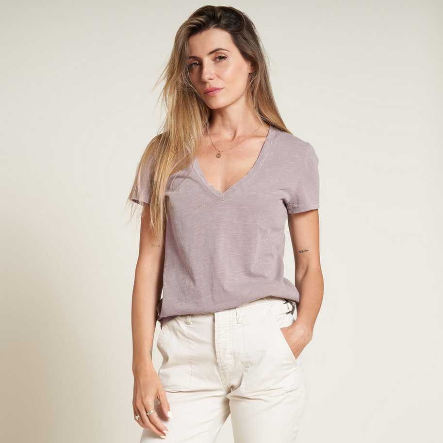 Carrying over the same fit and 100% cotton slub as our beloved Tyler Slub Tee now with a plunging V-neck. The Tyler Slub Tee and Deep V Neck Slub are 2 inches longer in body length than our classic Tyler Tee.