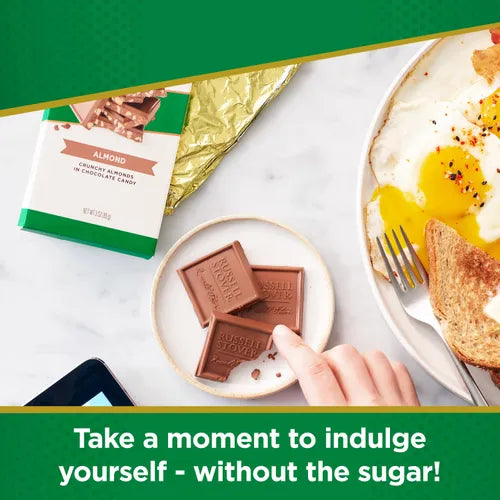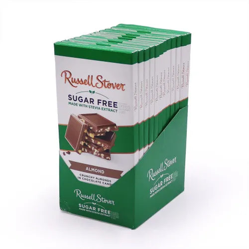 Russell Stover Chocolates 3 oz. Sugar Free Chocolate Candy Almond Tile Bar, case of 12