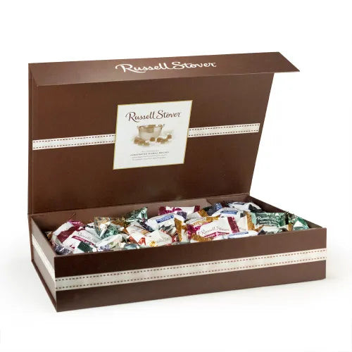 Our Assorted Milk & Dark Chocolate 100 Piece Pre-Mix Box features five of our most beloved flavors. Each piece is individually wrapped, making this box perfect for filling up the candy bowl, gift bags, Christmas stockings, Easter baskets and more! Celebrate every day moments and special occasions with Russell Stover, an American made classic since 1923.