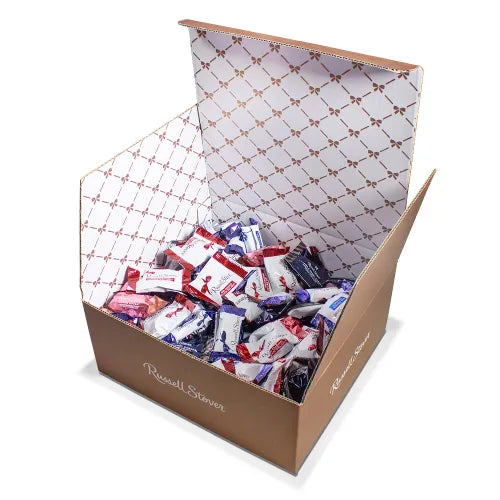 Make a bold and delicious impression with the 5 lb. Russell Stover Elegant Copper Box. This oversized gourmet chocolate gift features a luxurious assortment of milk and dark chocolates, including caramels, nougats, truffles, creams, and nut clusters. Elegantly packaged and perfect for holidays, corporate gifts, or chocolate lovers who want it all.
