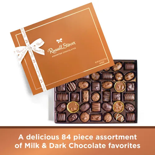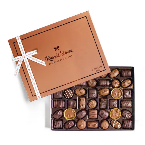 Elevate your gifting with the 3 lb. Russell Stover Elegant Copper Box. Packed with rich milk and dark chocolate favorites, this assortment includes soft centers, crunchy nut clusters, and silky caramels. Wrapped in a timeless copper box, it’s perfect for special celebrations, client gifts, or any chocolate connoisseur.