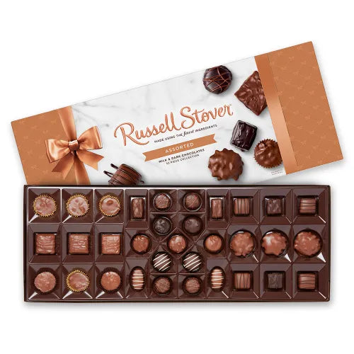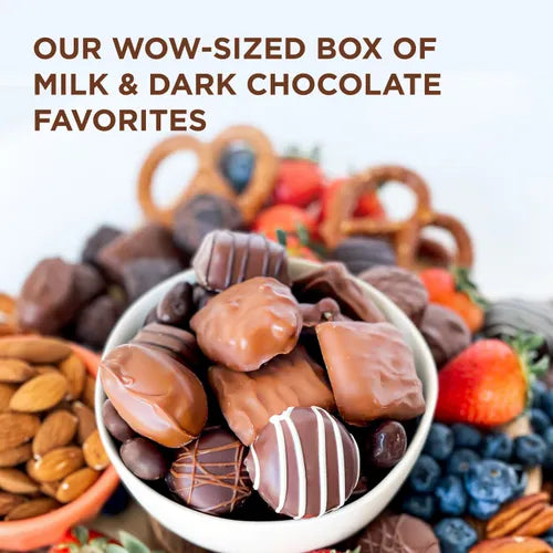 Delight in the timeless taste of Assorted Chocolates, beautifully packaged in a generous 20 oz. big box. Featuring a decadent variety of milk chocolates, dark chocolates, and creamy centers, this luxurious assortment is perfect for gifting, sharing, or savoring all to yourself. From rich truffles to buttery caramels and nut-filled favorites, every bite is crafted with the finest ingredients and a tradition of quality that dates back over 100 years.