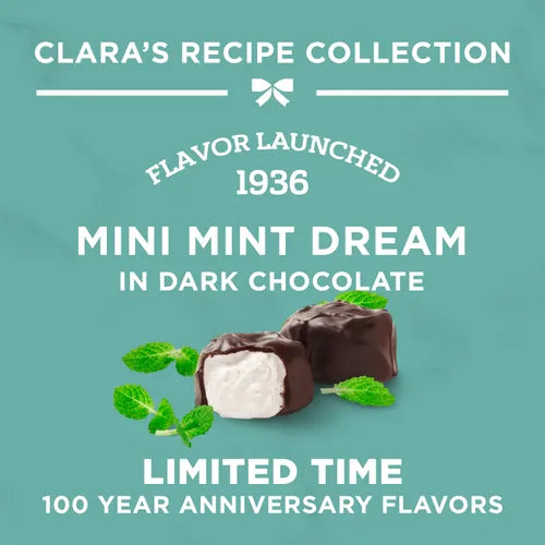 Indulge in a refreshing twist on tradition with Clara’s Classic Recipe Collection – Dark Chocolate Mint Dreamd, 8 oz. box. Crafted from Clara Stover’s original recipes, each piece features a smooth, cool mint crème center coated in rich, decadent dark chocolate, creating an irresistibly bold and refreshing flavor combination.