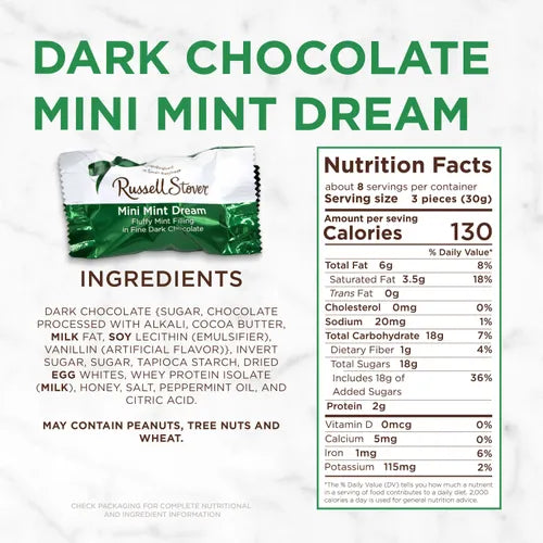 Russell Stover Chocolates Clara's Recipe Dark Chocolate Mini Mint Dream, 8 oz. Box