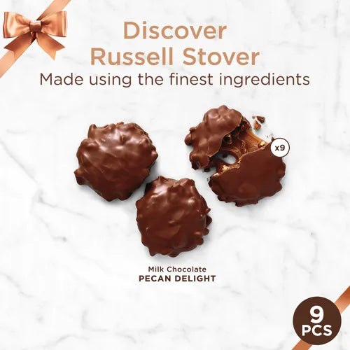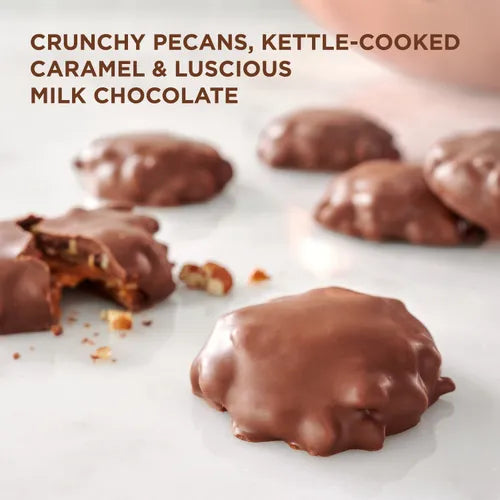 Pecan Delights are a classic chocolate that's sure to be a crowd-pleaser. Generous clusters of pecans and silky caramel are covered in milk chocolate and packaged in a beautiful box. It's the perfect choice among chocolate gifts to send for any occasion.