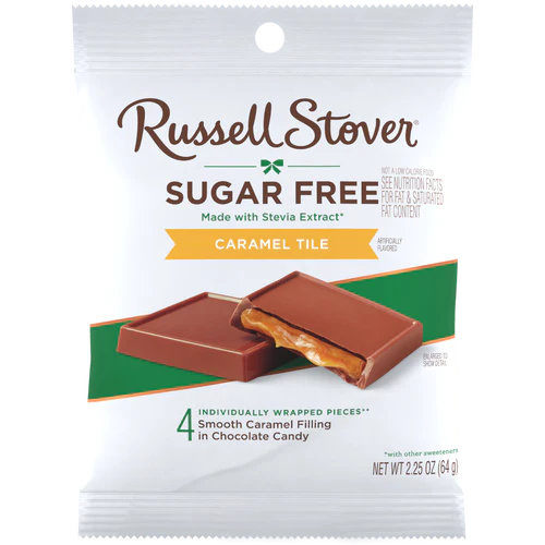 Russell Stover Chocolates Sugar Free Caramel Tiles Candy, 2.25 oz bag