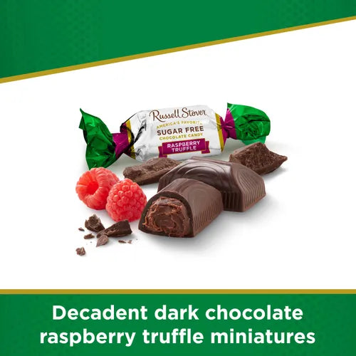 Russell Stover Chocolates Sugar Free Dark Chocolate Candy Raspberry Truffle Miniature, 10 oz. box