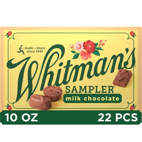 This indulgent box features only Whitman's Sampler milk chocolate assorted favorites—from caramel chews to nutty nougats. Whitman’s all-milk Sampler is a creamy, dreamy gift for anyone who loves smooth, melt-in-your-mouth chocolates.