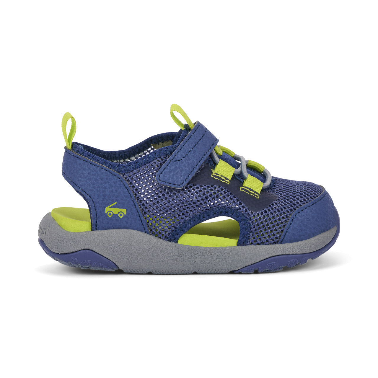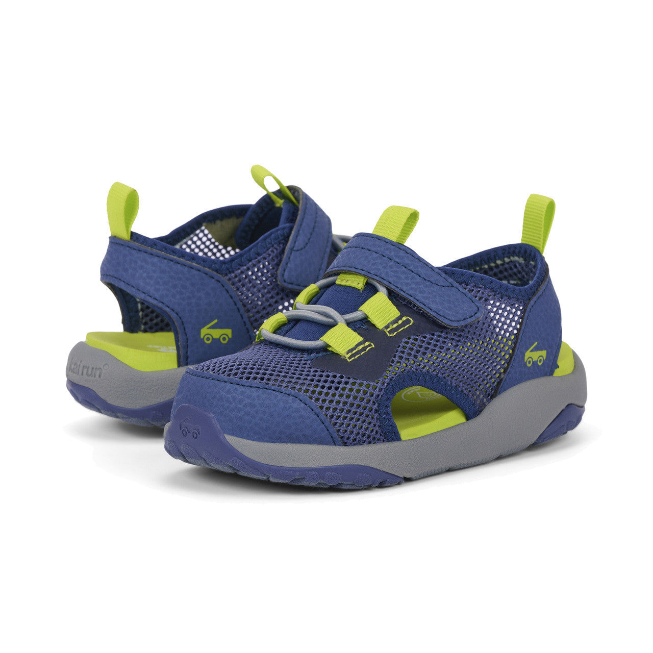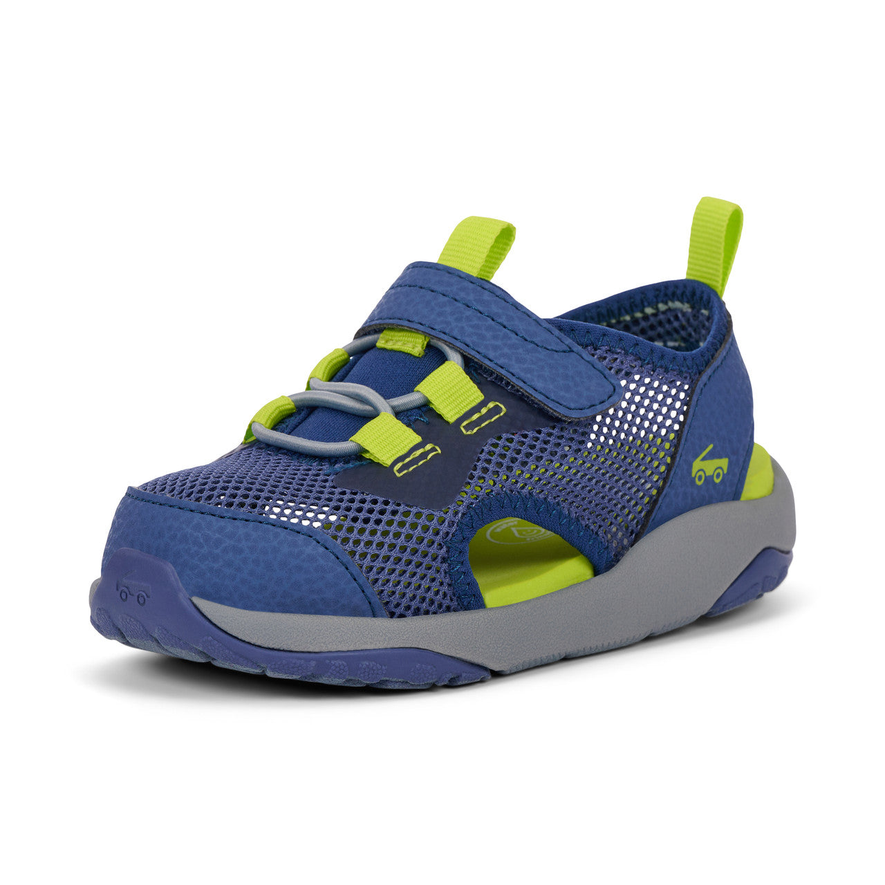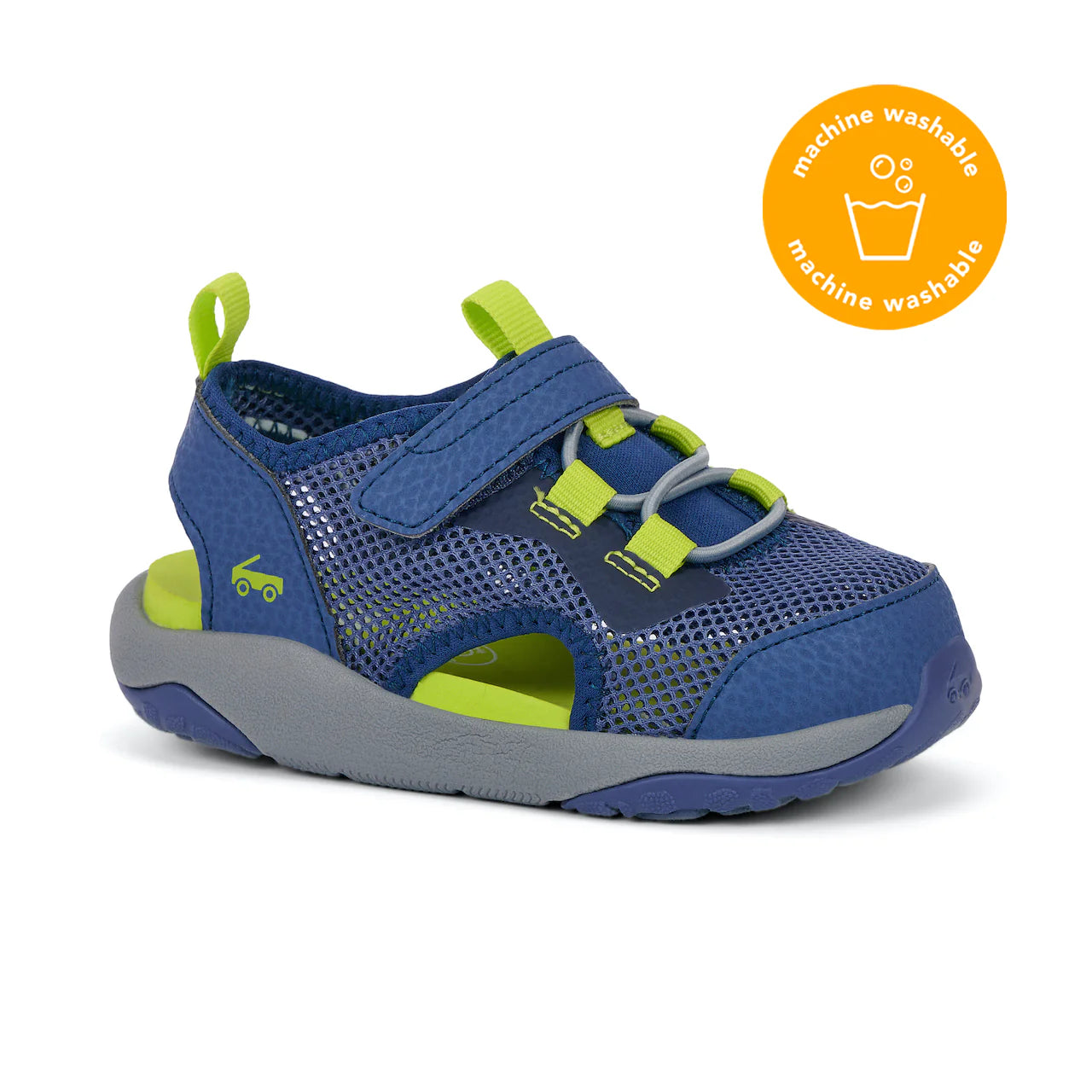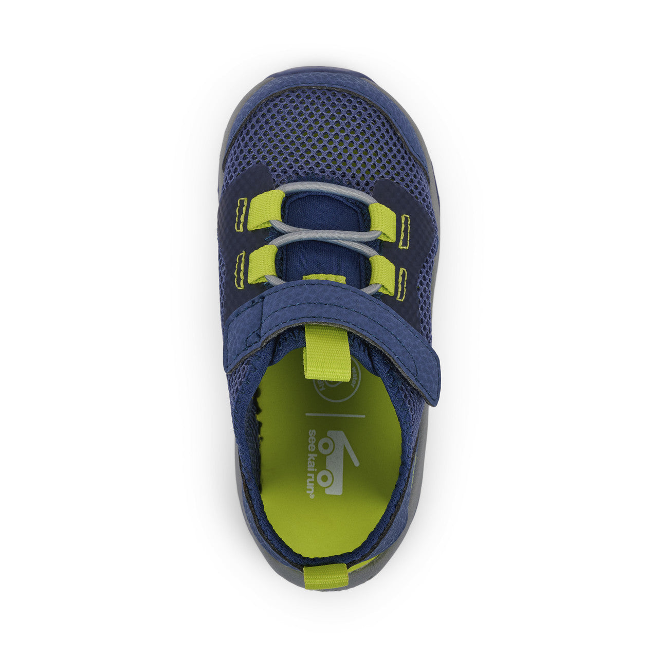 Navy open mesh textile water-friendly upper. Recycled jersey details plus nubuck-feel overlays and toe cap. Ultra-breathable interior with cushy EVA footbed for all-day comfort. interior with cushy EVA footbed for all-day comfort. Lightweight, cushioned FlexiRun™ EVA foam midsole. TPR full rubber outsole with traction inlays for excellent grip. Adjustable hook-and-loop strap and faux elastic laces allow for a secure fit. Generous toe box provides room for healthy foot development. Vegan – made without any animal products. Machine Washable Care Instructions: Machine wash cold on gentle cycle with mild detergent. Do not bleach. Air dry.
