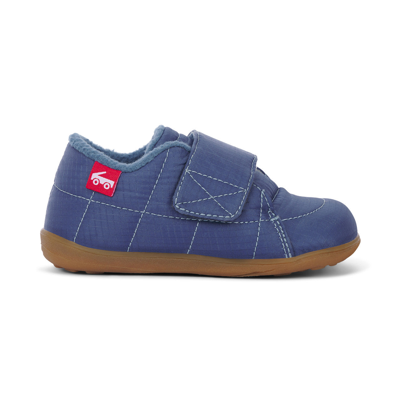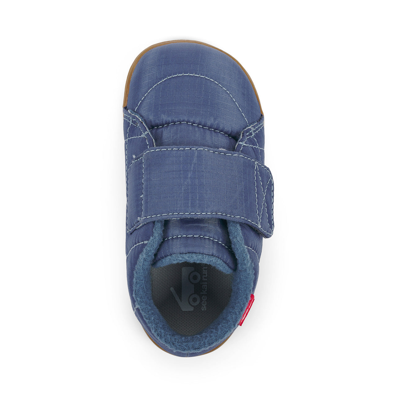 Blue ripstop nylon upper. Fleece lining keeps feet warm, while recycled mesh-lined sockliner keeps feet dry and fresh. Recycled TPR full rubber outsole provides flexibility and traction for play. Extra wide opening and adjustable hook-and-loop strap allows for secure fit and custom adjustability. Classic SKR fit gives feet room to move and grow. Awarded the Seal of Acceptance from the American Podiatric Medical Association (APMA). Vegan – made without any animal products.