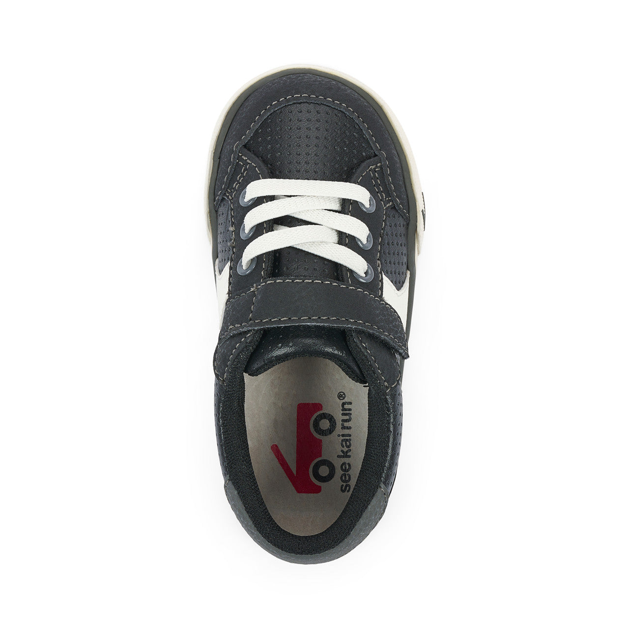 Black leather upper with nubuck-feel overlays. Breathable recycled mesh lining and removable, leather-lined footbed is contoured for all-day comfort. Natural rubber outsole with herringbone lug pattern provides great traction for play. Hook-and-loop strap and faux elastic laces allow for secure fit and custom adjustability. Classic SKR fit gives feet room to move and grow. Awarded the Seal of Acceptance from the American Podiatric Medical Association (APMA).
