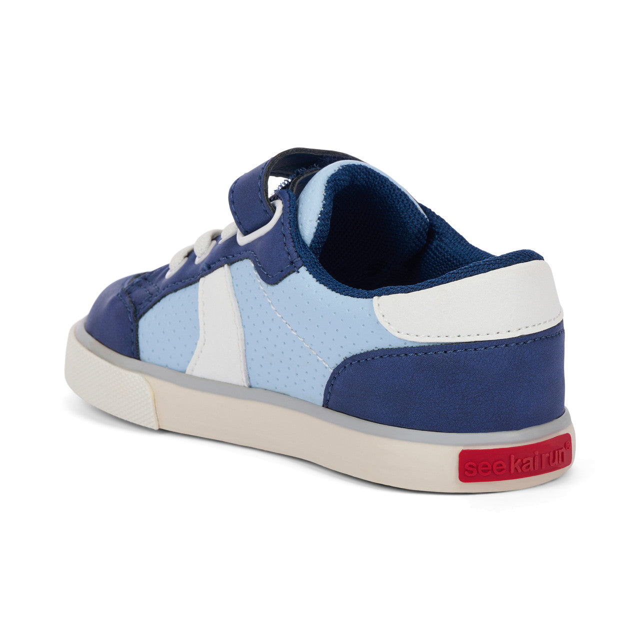 Ready, set, play with the Connor - a retro court inspired sneaker made of baby blue debossed action leather upper, tan microsuede overlays, and tonal accents. Criss-cross elastic lace pattern for an elevated look with the same ease of entry. Includes 100% leather lined removable molded footbed for a healthy foot climate. Lightweight and flexible with a wide opening makes it easy to get shoes on and stay on, leaving more time for play. Â Â