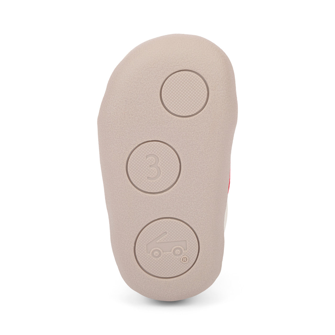 Recycled TPR rubber outsole provides flexibility, traction, and durability for early steps.