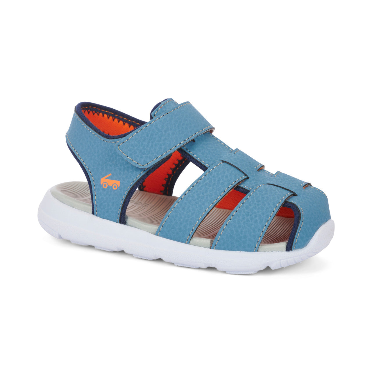 Our Cyrus IV FlexiRun fisherman sandals in light blue are perfect for your little one's next spring/summer adventure! These sporty closed-toe sandals are made with lightweight, durable, and water-friendly materials, and feature a cushy, soft footbed and a lightweight EVA foam outsole.