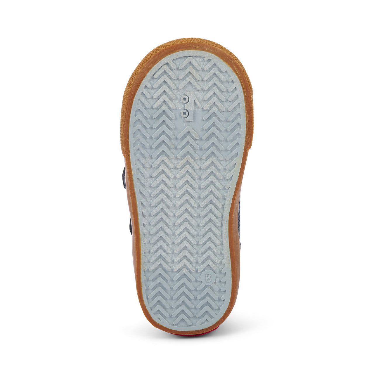 Natural rubber outsole with herringbone lug pattern provides great traction for play.