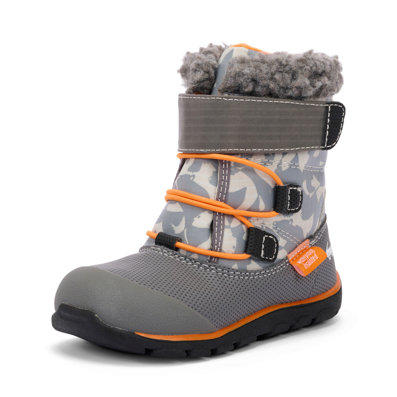 Winter play in style and comfort with the Gilman Waterproof/Insulated Boots for toddlers. Featuring our proprietary polar bear print, the flexible gripping outsole and waterproof, insulated design will keep little feet warm and dry. The wide opening closure makes in and out easy as can be.