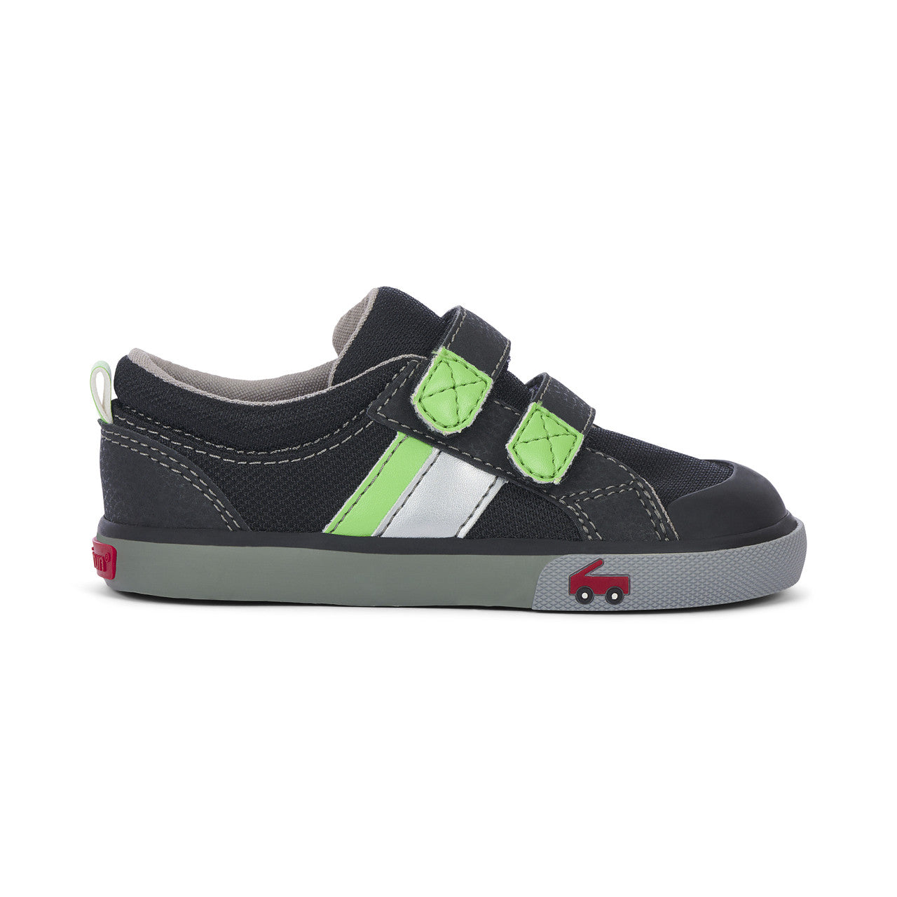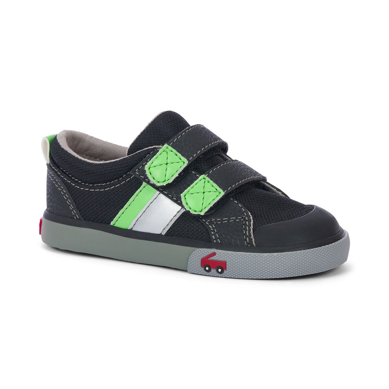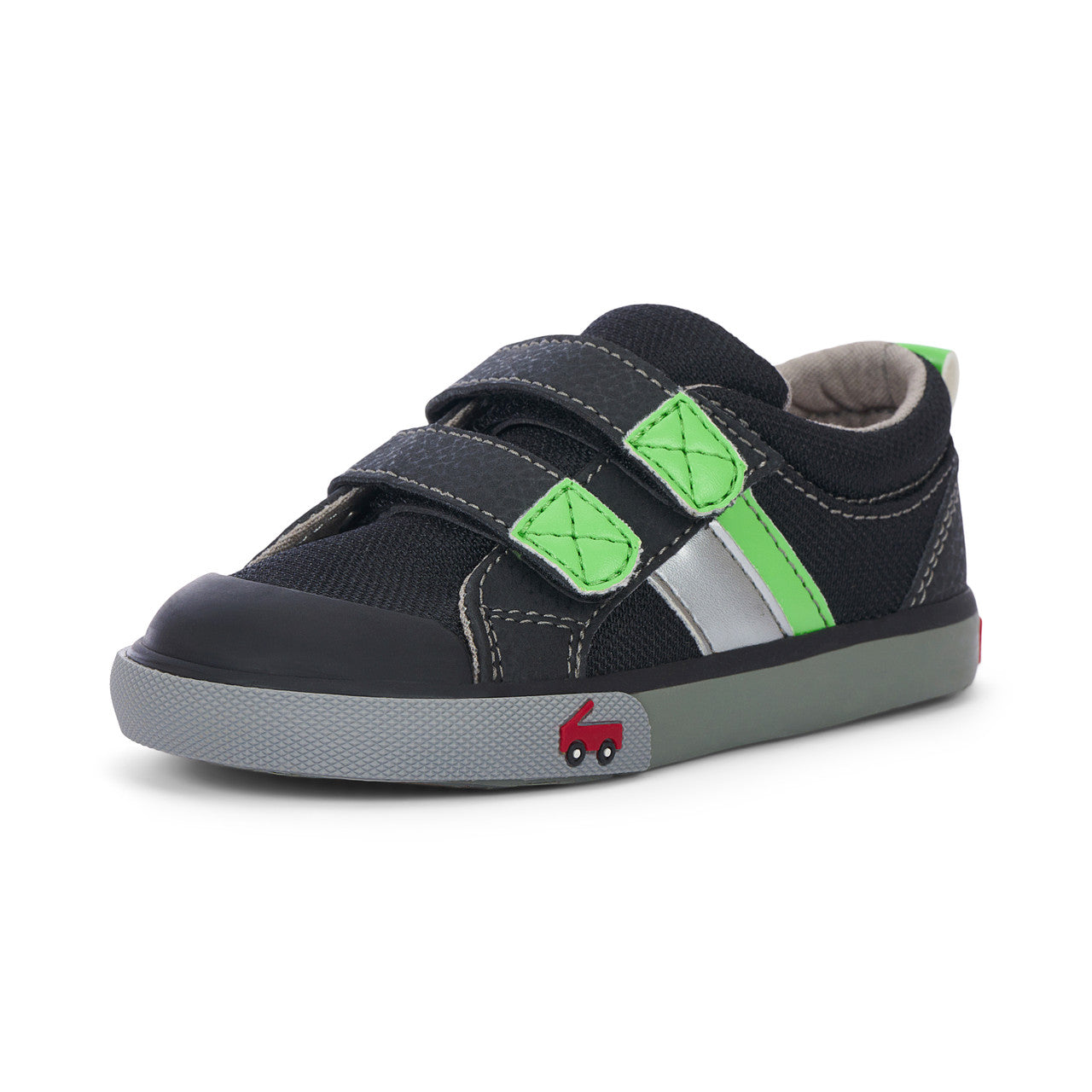 Mesh textile upper with nubuck-feel accents and rubber toe cap for protection. Breathable cotton canvas lining and removable, leather-lined footbed is contoured for all-day comfort. Natural rubber outsole with herringbone lug pattern provides great traction for play. Double hook-and-loop straps allow for a secure fit and custom adjustability. Classic SKR fit gives feet room to move and grow. Awarded the Seal of Acceptance from the American Podiatric Medical Association (APMA).