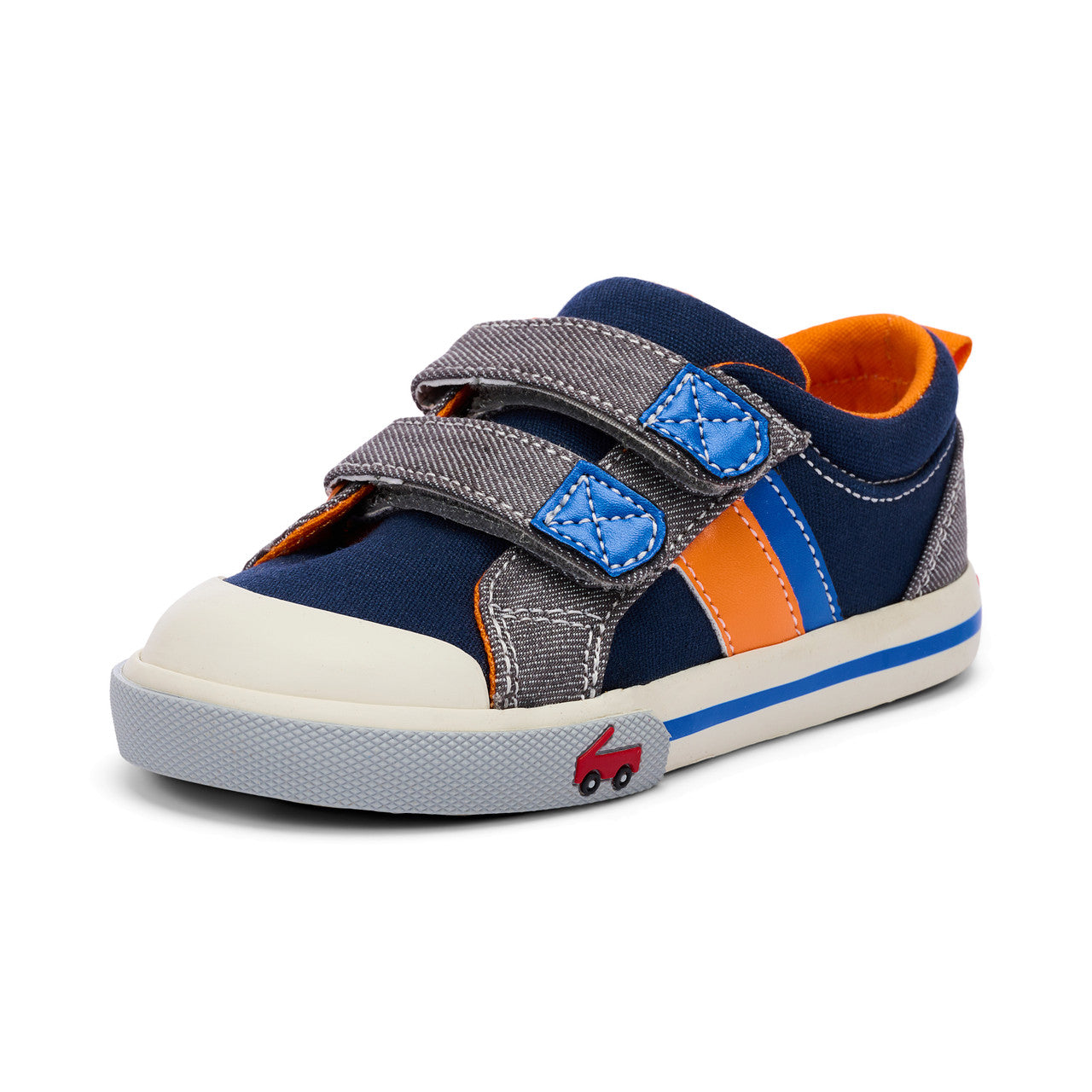 This sporty boys’ sneaker, accented with racing stripes, is ready for a day of new discoveries. Its double hook-and-loop closure and gripping outsole ensure a safe and secure fit.