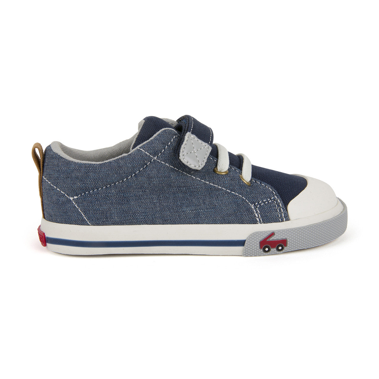 Rubber outsole’s herringbone lug pattern provides great traction for play Hook and loop strap and faux elastic laces allow for secure fit and custom adjustability Classic SKR fit gives feet room to move and grow Rubber toe adds protection Denim uppers with heathered cotton jersey lining Awarded the Seal of Acceptance from the American Podiatric Medical Association (APMA)