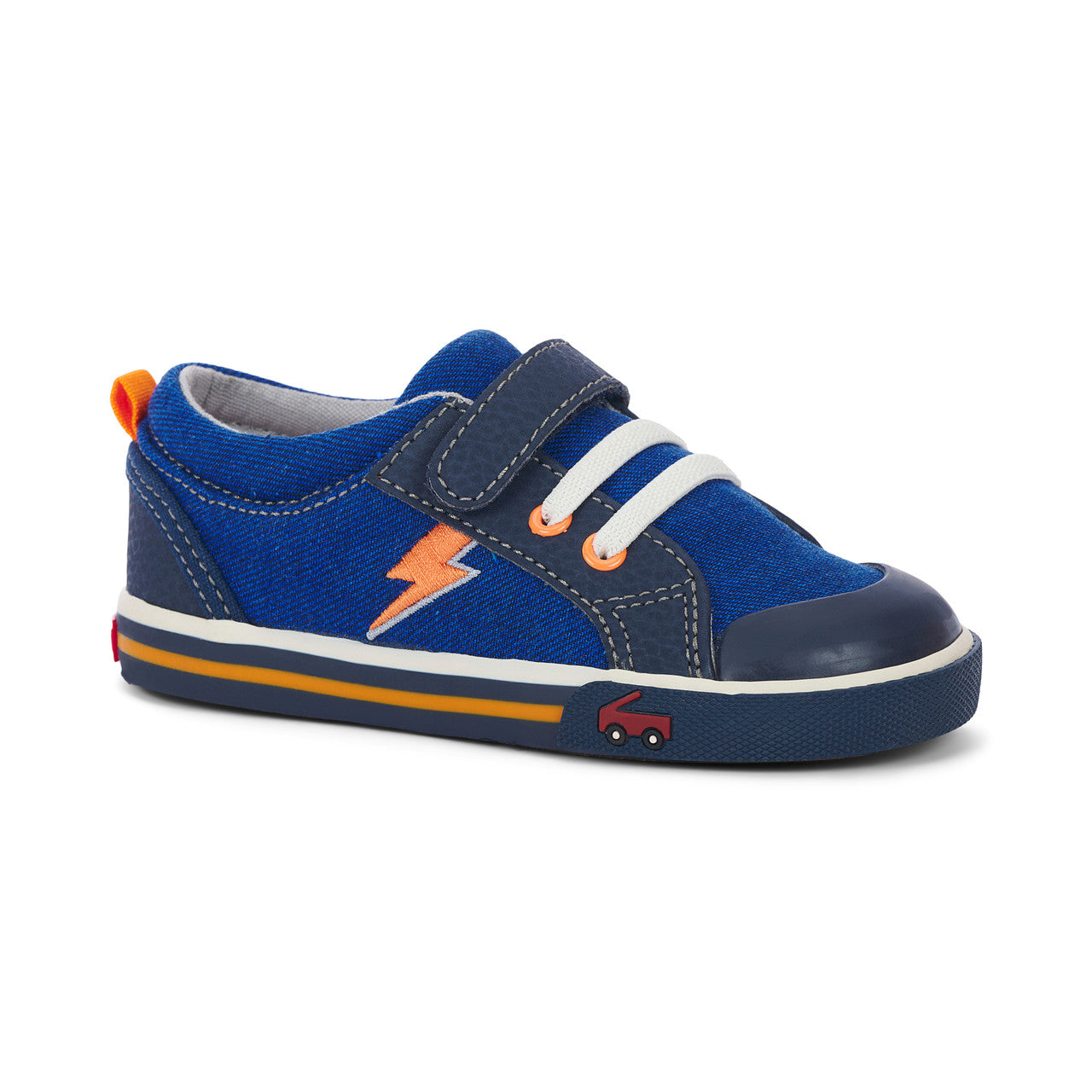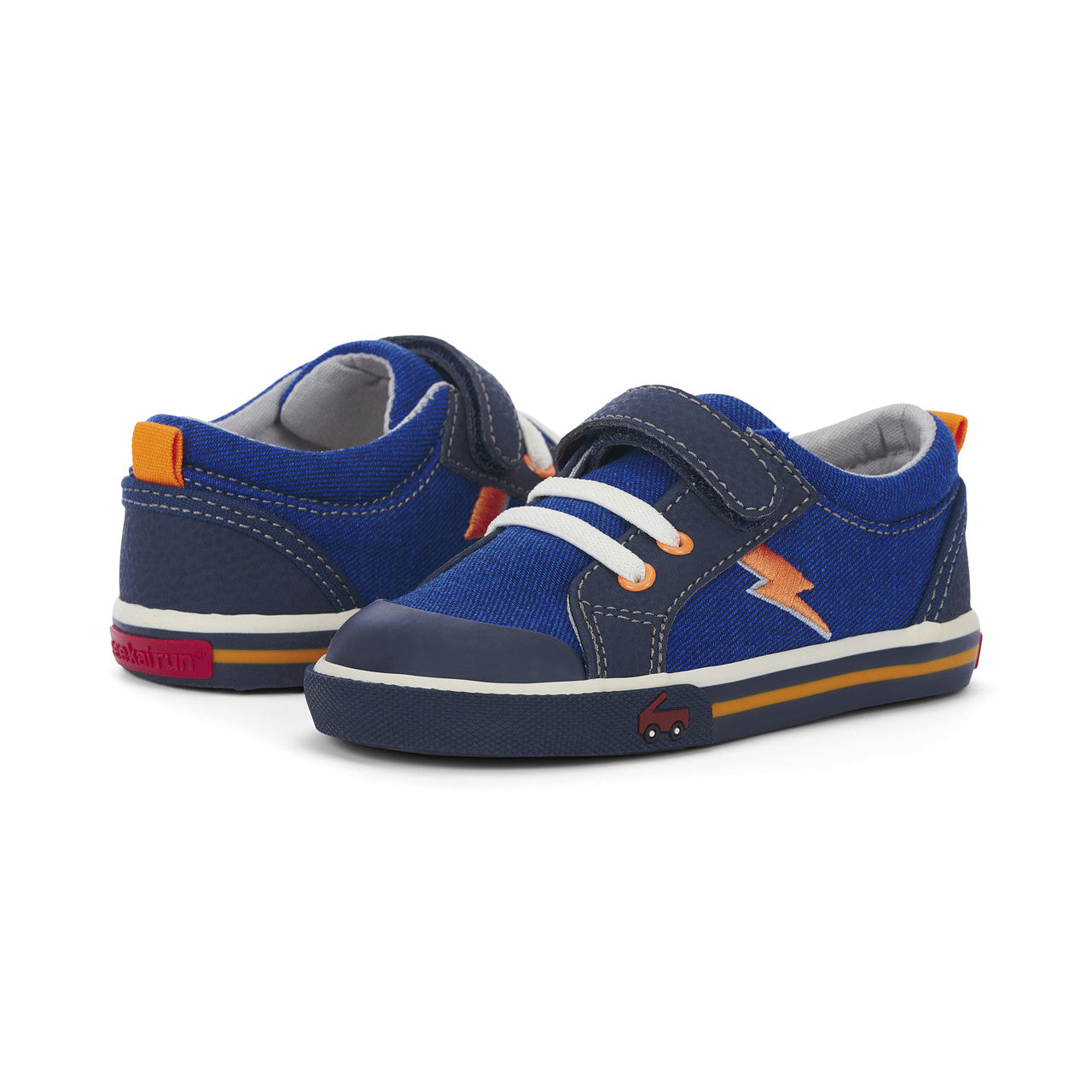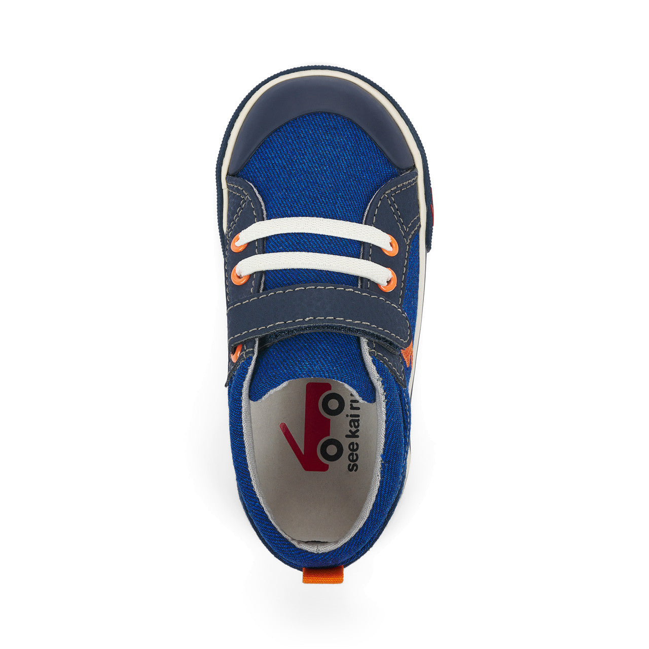 Denim and nubuck-feel upper with rubber toe cap for protection. Breathable cotton canvas lining and removable, leather-lined footbed is contoured for all-day comfort. Natural rubber outsole with herringbone lug pattern provides great traction for play. Hook-and-loop strap and faux elastic laces allow for a secure fit and custom adjustability. Classic SKR fit gives feet room to move and grow. Awarded the Seal of Acceptance from the American Podiatric Medical Association (APMA).