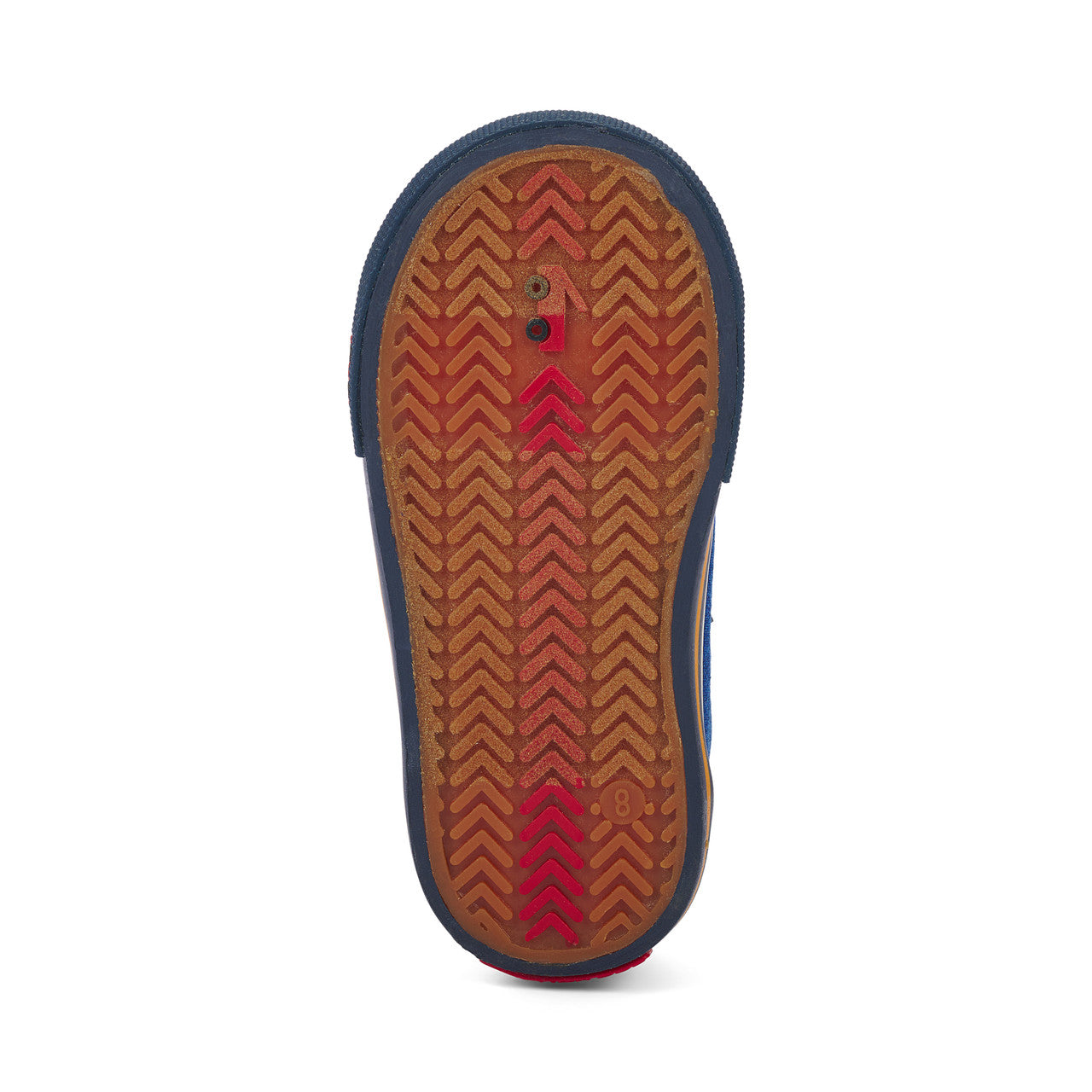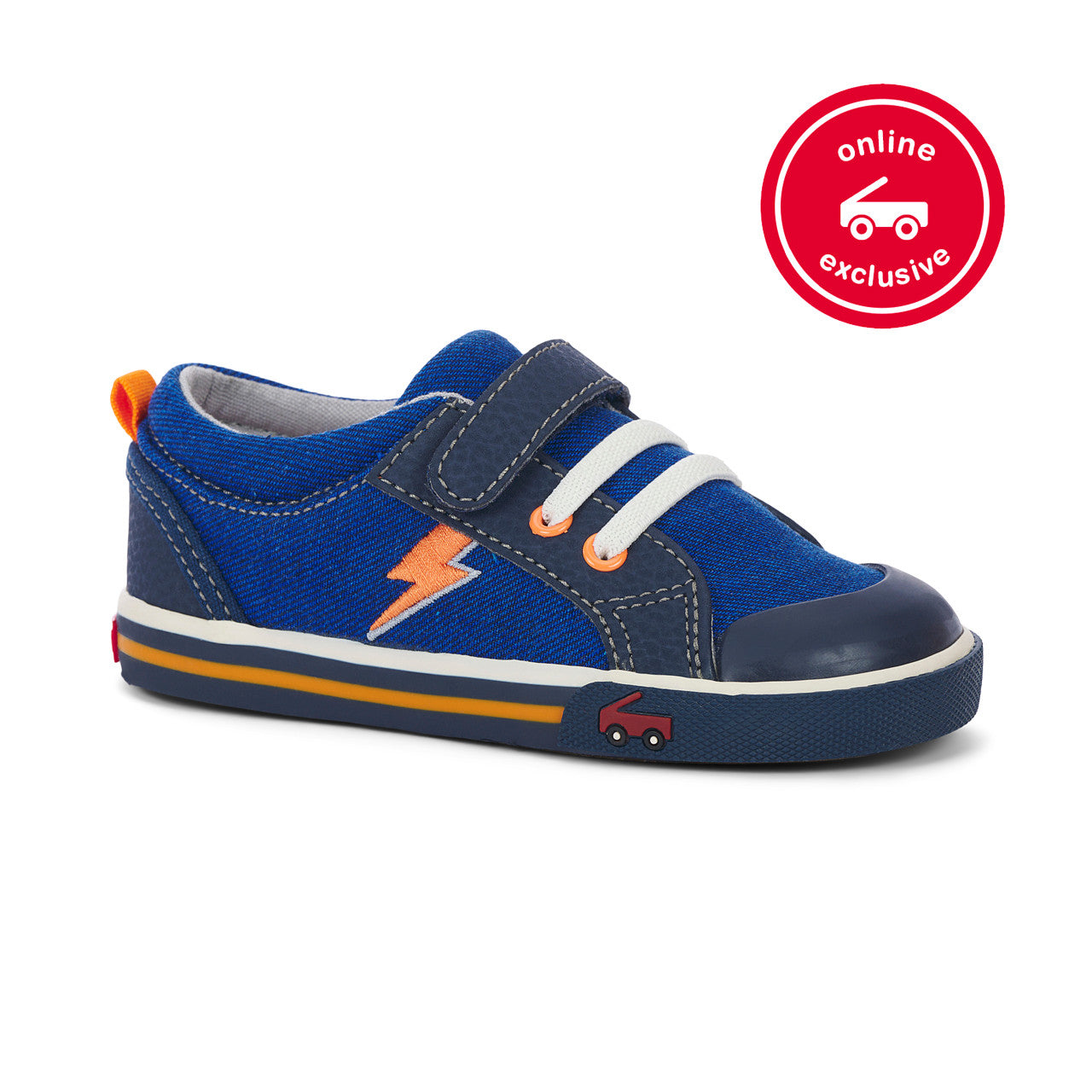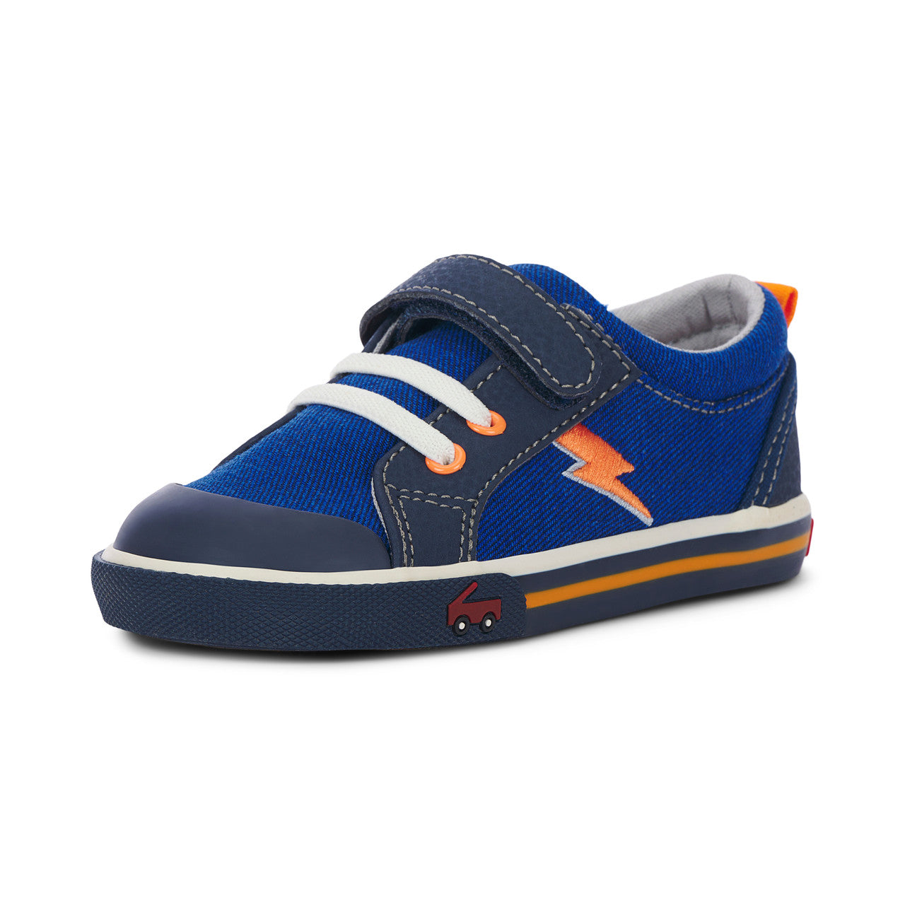 Denim and nubuck-feel upper with rubber toe cap for protection. Breathable cotton canvas lining and removable, leather-lined footbed is contoured for all-day comfort. Natural rubber outsole with herringbone lug pattern provides great traction for play. Hook-and-loop strap and faux elastic laces allow for a secure fit and custom adjustability. Classic SKR fit gives feet room to move and grow. Awarded the Seal of Acceptance from the American Podiatric Medical Association (APMA).