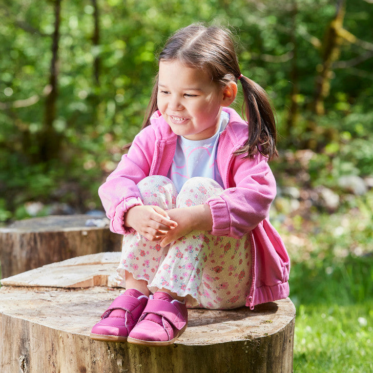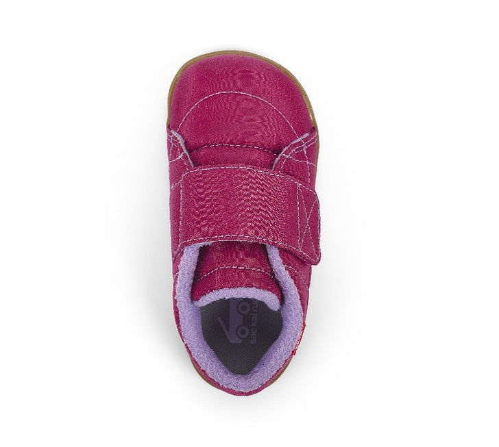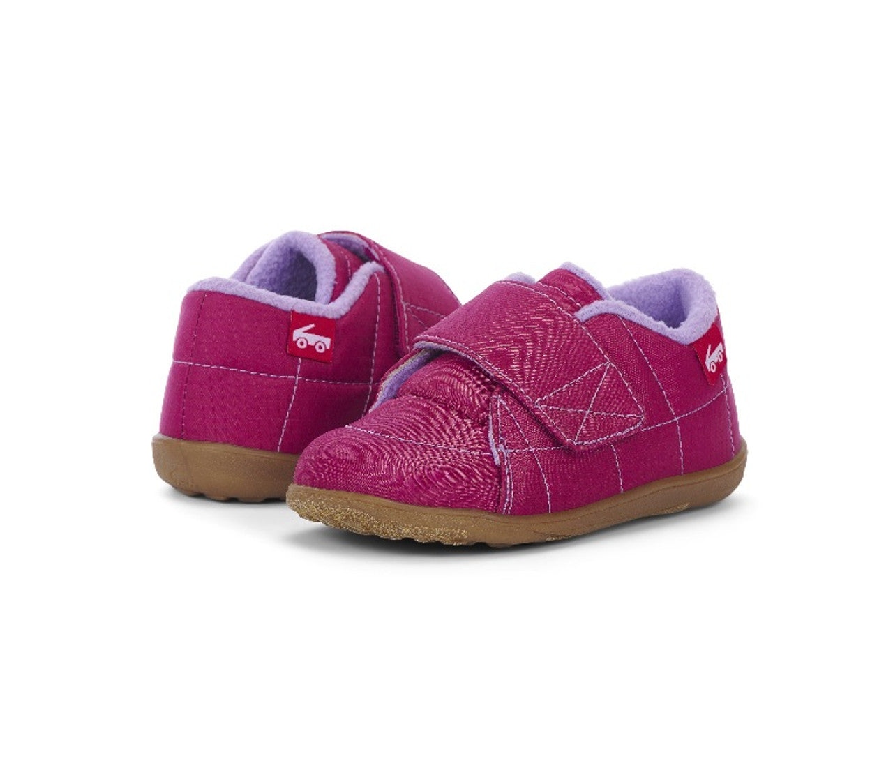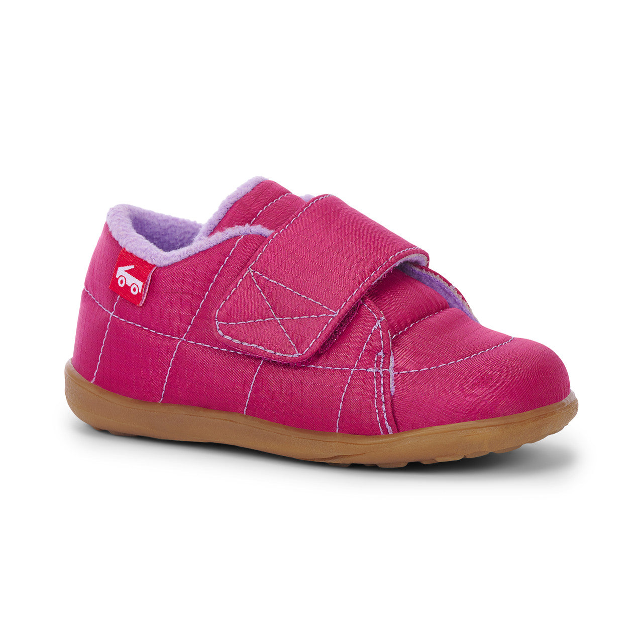 Berry ripstop nylon upper. Fleece lining keeps feet warm, while recycled mesh-lined sockliner keeps feet dry and fresh. Recycled TPR full rubber outsole provides flexibility and traction for play. Extra wide opening and adjustable hook-and-loop strap allows for secure fit and custom adjustability. Classic SKR fit gives feet room to move and grow. Awarded the Seal of Acceptance from the American Podiatric Medical Association (APMA). Vegan – made without any animal products. Care Instructions: Machine wash cold on gentle cycle with mild detergent. Do not bleach. Air dry.