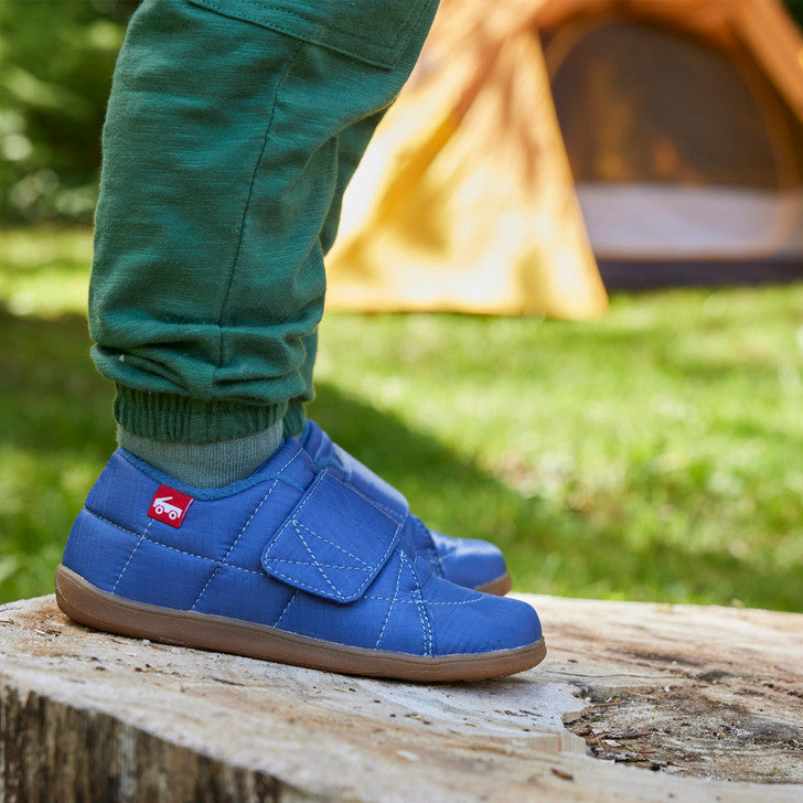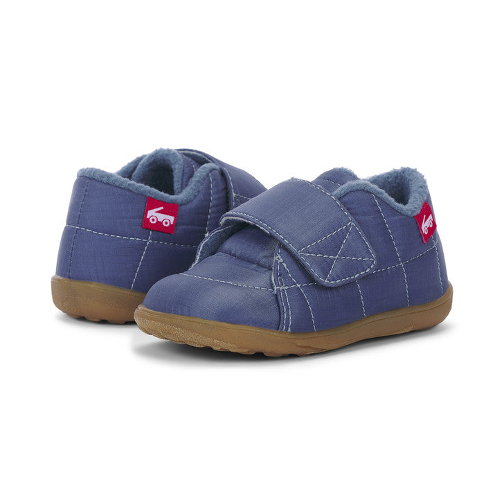 Blue ripstop nylon upper. Fleece lining keeps feet warm, while recycled mesh-lined sockliner keeps feet dry and fresh. Recycled TPR full rubber outsole provides flexibility and traction for play. Extra wide opening and adjustable hook-and-loop strap allows for secure fit and custom adjustability. Classic SKR fit gives feet room to move and grow. Awarded the Seal of Acceptance from the American Podiatric Medical Association (APMA). Vegan – made without any animal products. Care Instructions: Machine wash cold on gentle cycle with mild detergent. Do not bleach. Air dry.
