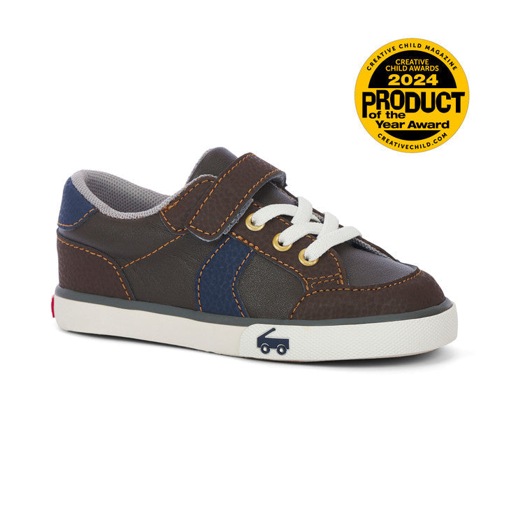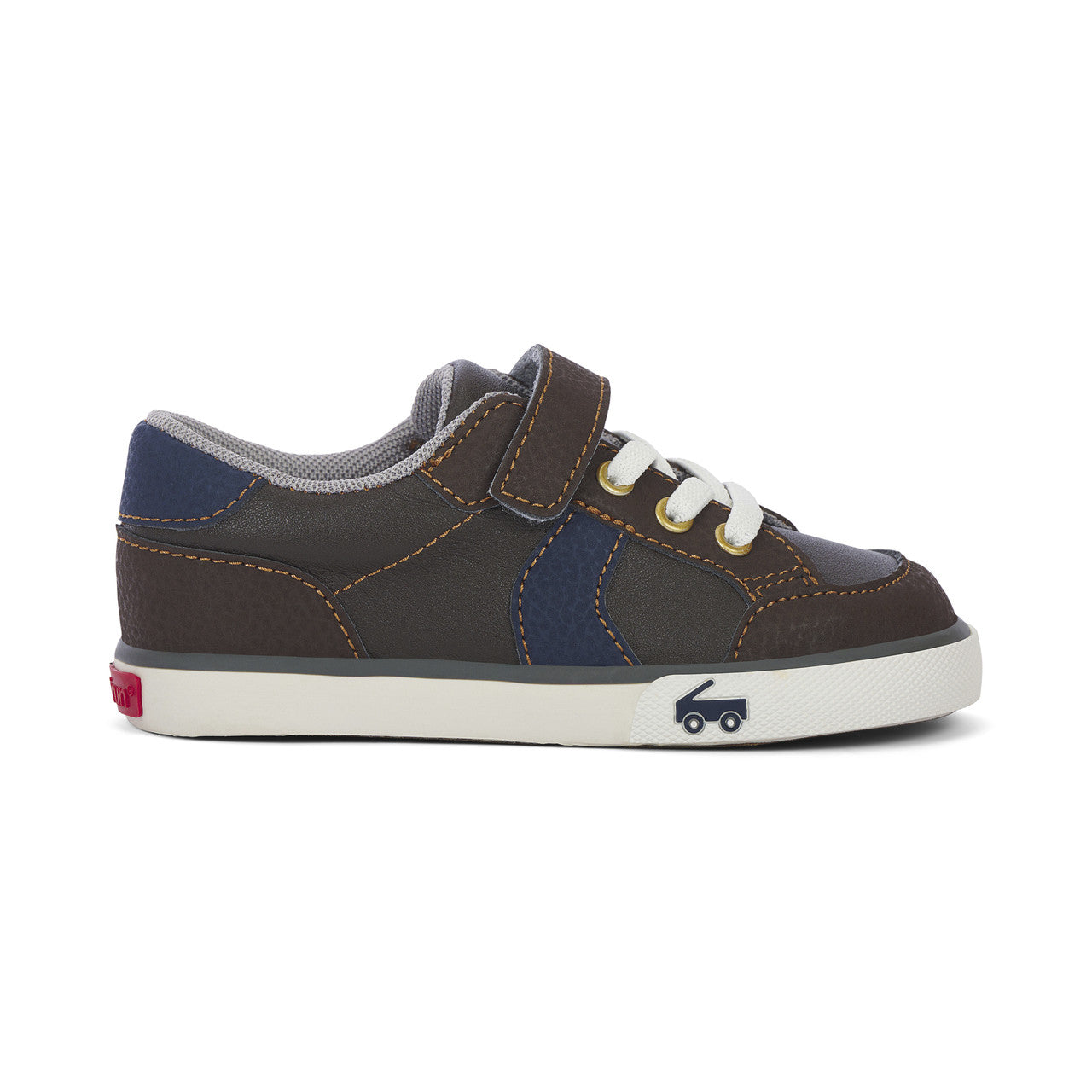 Brown leather upper with nubuck-feel overlays. Breathable recycled mesh lining and removable, leather-lined footbed is contoured for all-day comfort. Natural rubber outsole with herringbone lug pattern provides great traction for play. Hook-and-loop strap and faux elastic laces allow for secure fit and custom adjustability. Classic SKR fit gives feet room to move and grow. Awarded the Seal of Acceptance from the American Podiatric Medical Association (APMA). Care Instructions: Spot clean using a mild detergent and damp cloth. Allow to air dry.