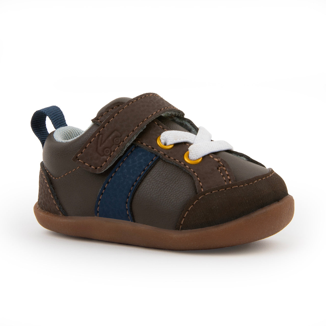 Description Retro inspired yet right on trend, our Connor court-inspired first walker is ready for fun. Feet stay fresh on the inside and protected on the outside thanks to recycled mesh lining, a rubber toe cap, and flexible, durable outsole.