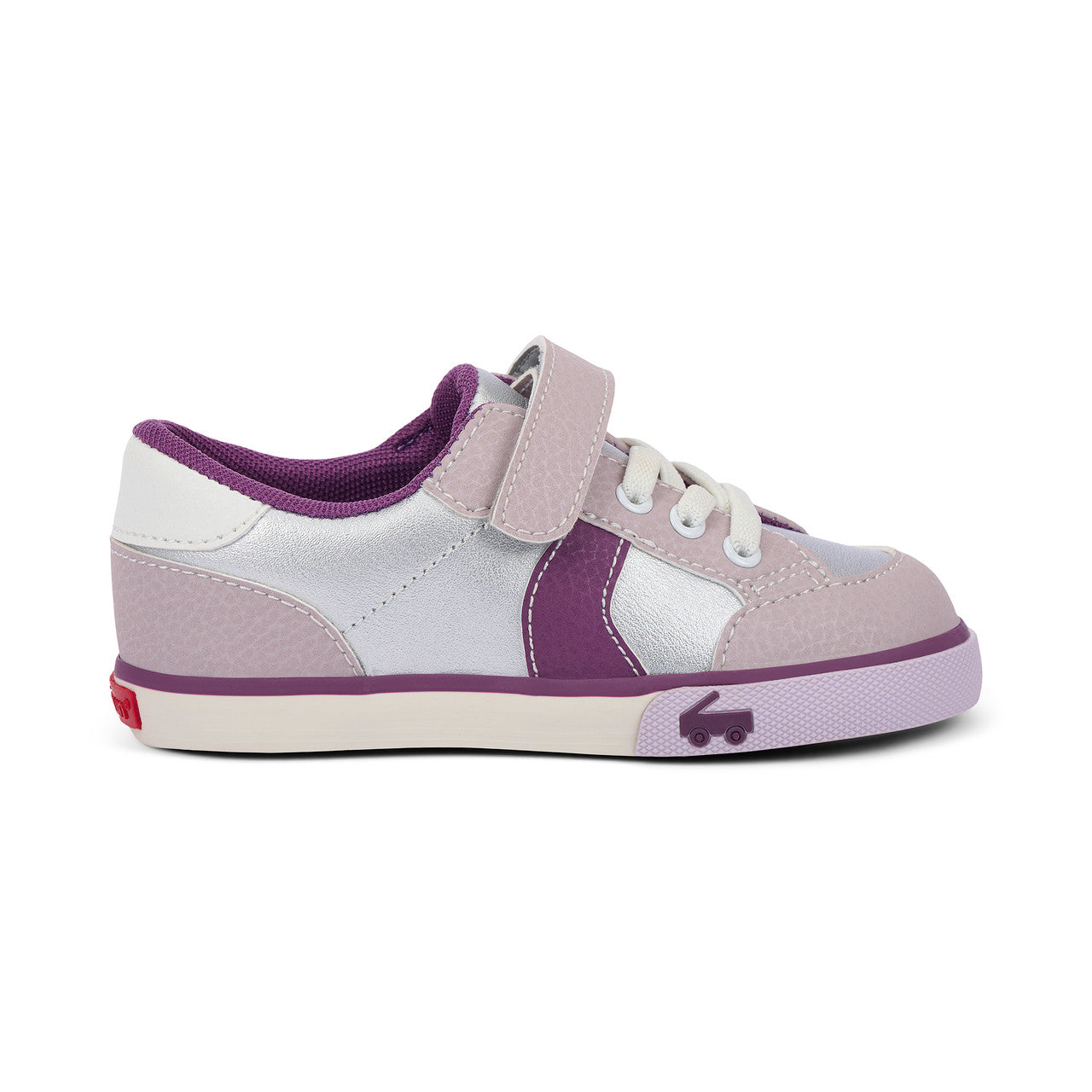 Retro inspired yet right on trend, our Connor court-inspired sneakers are ready for fun. Feet stay fresh on the inside and protected on the outside thanks to recycled mesh lining, and flexible, durable outsole. Finished with a mix of silver and purple shades for statement appeal.