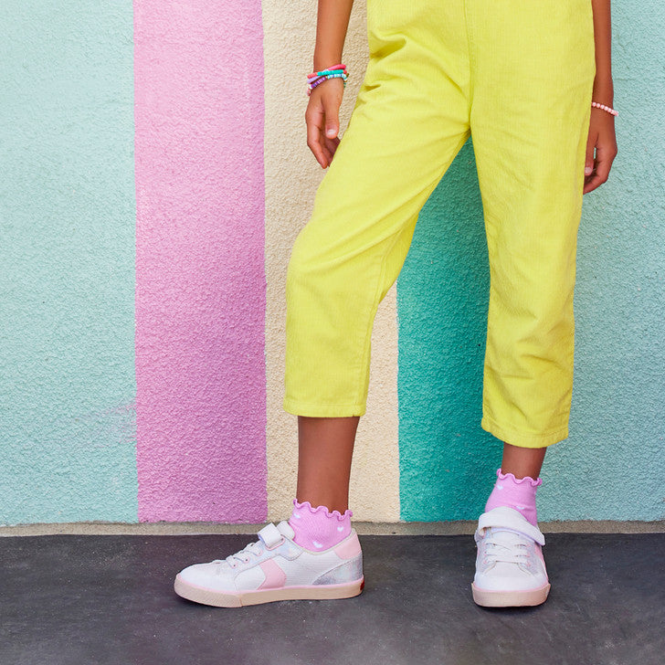 Action leather upper with metallic textile, nubuck-feel overlays and rubber toe cap for protection. Breathable recycled mesh lining and removable, leather-lined footbed is contoured for all-day comfort. Natural rubber outsole with herringbone lug pattern provides great traction for play. Hook-and-loop strap and faux elastic laces allow for secure fit and custom adjustability. Classic SKR fit gives feet room to move and grow. Awarded the Seal of Acceptance from the American Podiatric Medical Association (APMA) Care Instructions: Spot clean using a mild detergent and damp cloth. Allow to air dry.