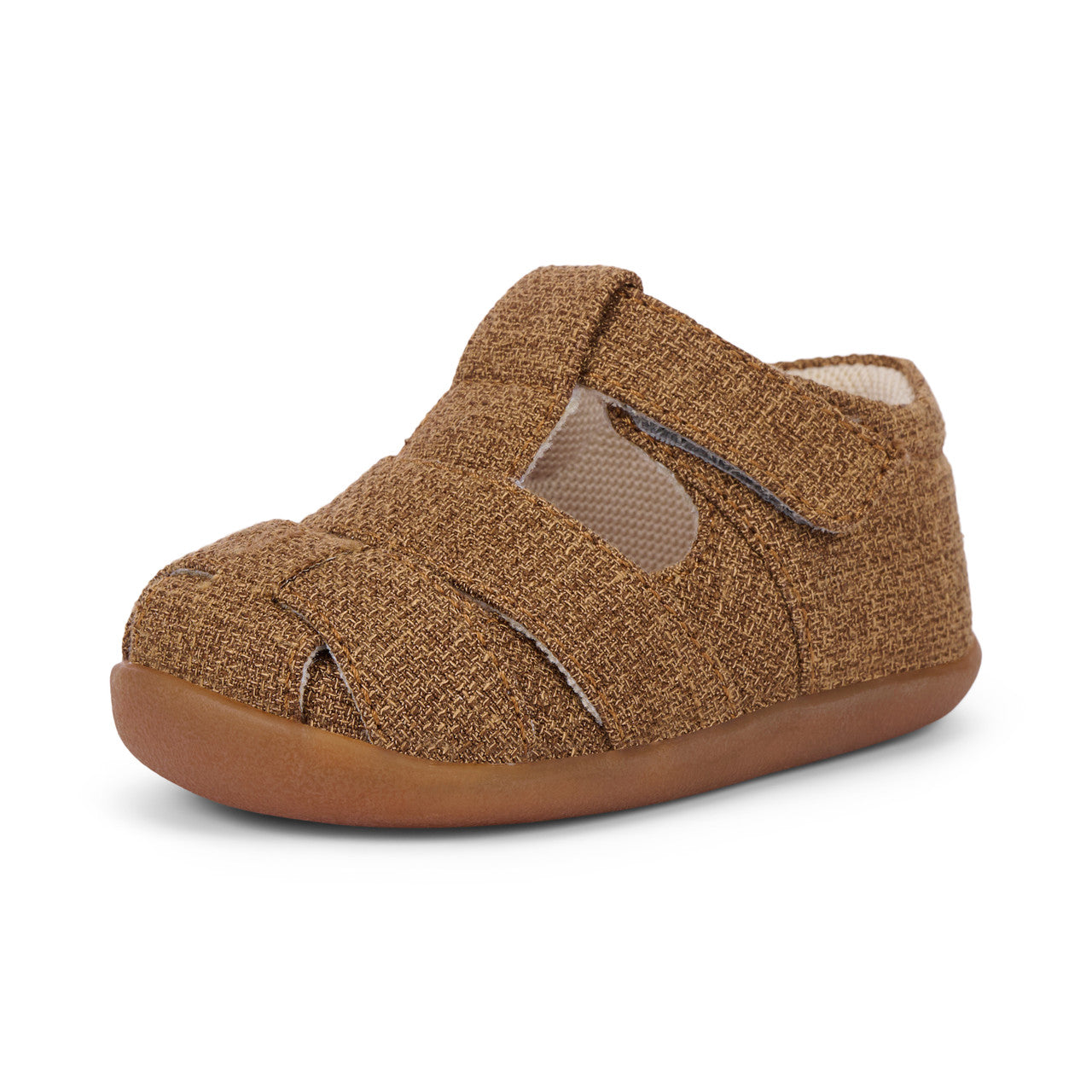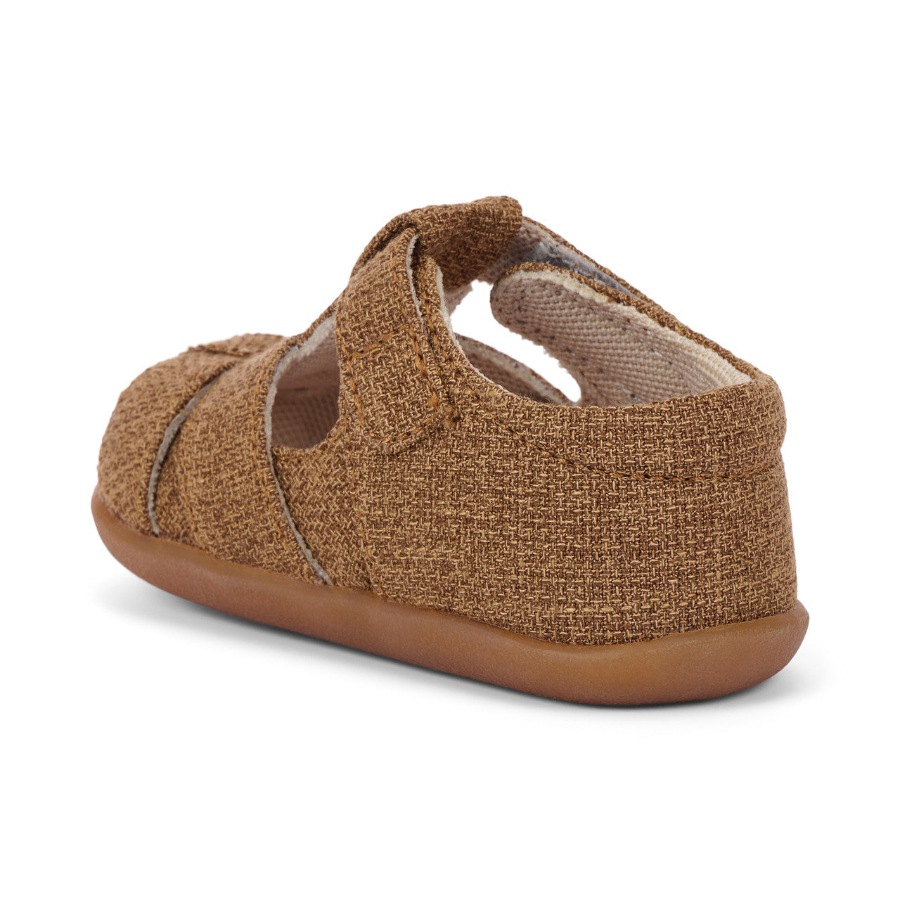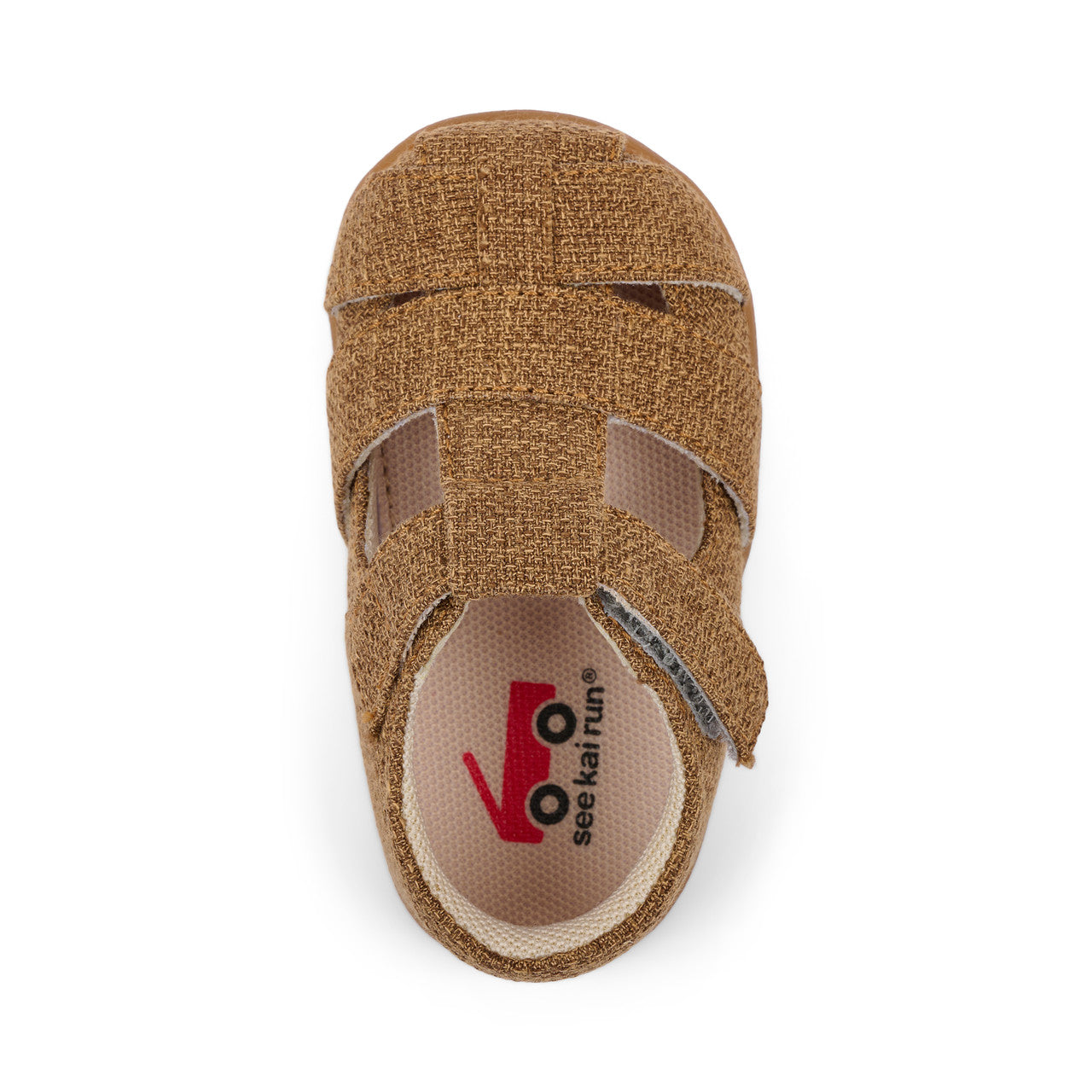 Woven thread summer sandal for little ones. Recycled mesh lining and sockliner keeps feet dry and fresh. Recycled TPR full rubber outsole provides flexibility, traction, and durability for early steps. Hook-and-loop strap allows for a secure fit and custom adjustability. Generous toe box provides room for healthy foot development. Awarded the Seal of Acceptance from the American Podiatric Medical Association (APMA). Vegan made without any animal products Care Instructions: Spot clean using a mild detergent and damp cloth. Allow to air dry.