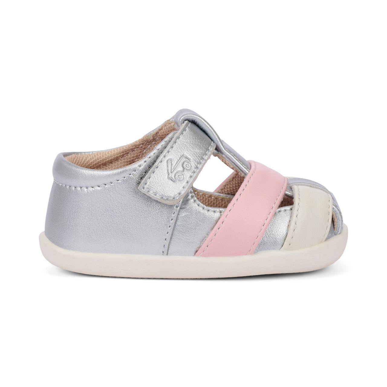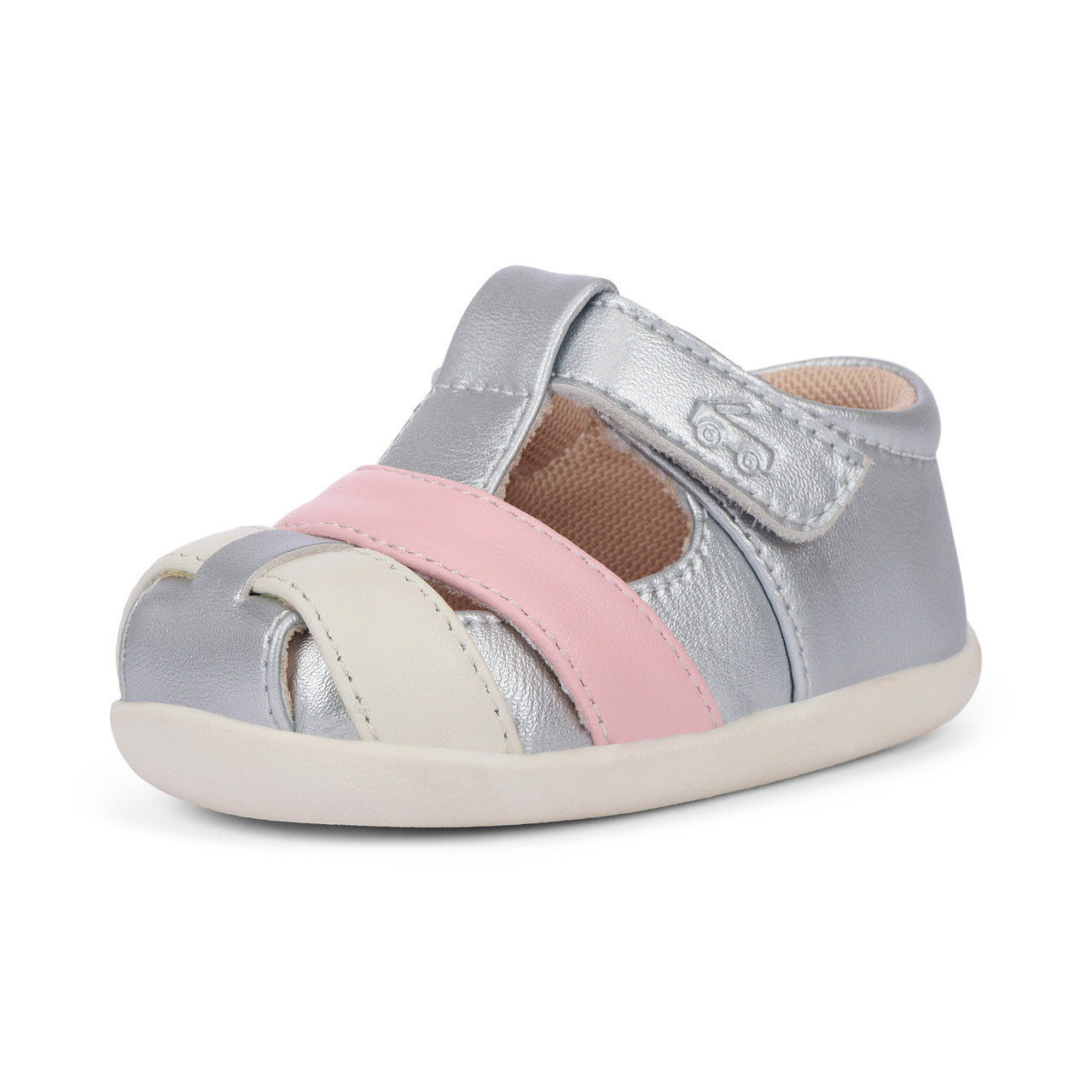 This classic silver fisherman sandal is an all-leather first walker sandal with a soft hand feel and protective rand for toes. Featuring recycled mesh lining for breathability, and a lightweight and flexible TPR outsole, perfect for little ones taking their first steps